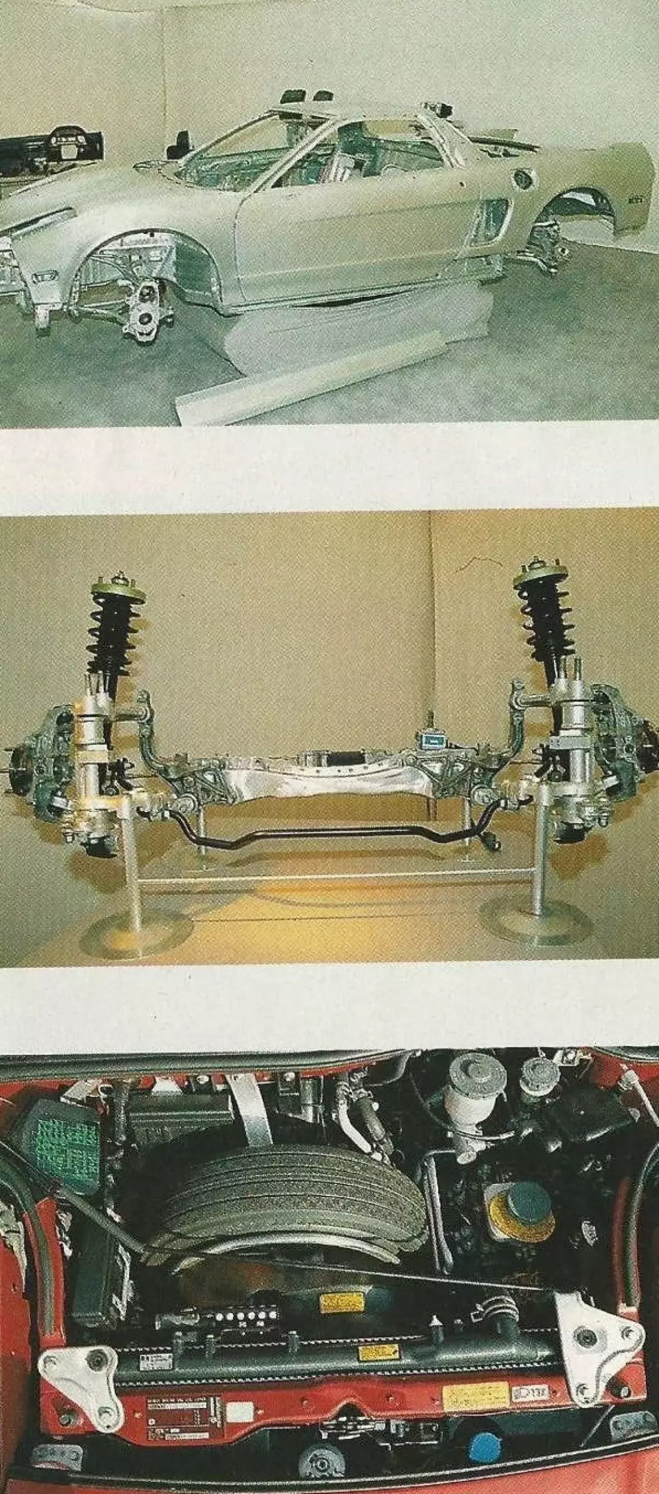 Напомним ее основные характеристики. Самая оригинальная заключается в том, что она полностью алюминиевая. NSX имеет только одну структурную деталь из стального листа — это поперечина, поддерживающая приборную панель. И еще два пластиковых элемента — это передний и задний бамперы. В остальном, это чистый алюминий, а точнее, всевозможные алюминиевые сплавы: литые, экструдированные, кованые, штампованные и т. д. Основная причина такого выбора: вес.