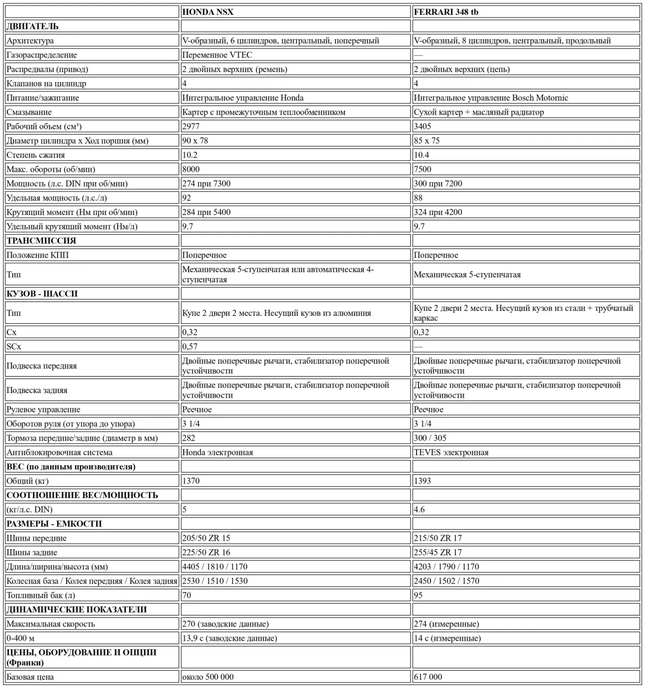 Приняв решение создать под своей маркой подлинный, бескомпромиссный спортивный автомобиль, и построив для этой цели эксклюзивный завод, Honda предприняла нечто беспрецедентное среди других автопроизводителей. Единственным схожим шагом можно назвать деятельность GM с Corvette. Но NSX, купе со среднемоторной компоновкой и уникальной для модельного ряда Honda механикой, идет дальше. Фактически, она бросает вызов самым спортивным моделям наиболее престижных специализированных производителей — Porsche и, конечно же, Ferrari. Приглашенные на первое знакомство с NSX, мы не удержались от желания сразу сравнить ее с 348 tb, королевой этого класса.
