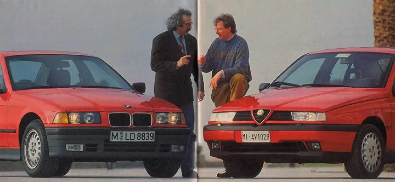 Перевод теста-сравнения Alfa Romeo 155 V6 vs BMW E36 320i от немецкого автомобильного журнального издания Auto Bild, № 18, Январь, 1992.