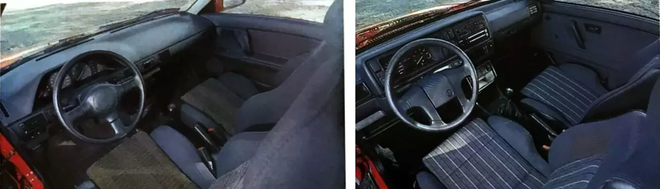 На дороге их будет еще труднее разделить. Обе обладают хорошей эластичностью и относительно комфортны на хорошем покрытии. Когда дорожное полотно ухудшается, это становится менее очевидно. Начинает трясти, причем, по-видимому, сильнее в Mazda. Но если Вы пересядете с 205 GTi, то, скорее всего, сочтете обе машины вполне расслабляющими. Любопытно, что Mazda кажется более жесткой на мелких неровностях, хотя при кренах создаст впечатление более сильной валкости. Что касается двигателей, то здесь можно считать, что статус-кво сохраняется. Mazda с турбонаддувом дарит водителю больше ощущений и поэтому более живая, чем компрессорный VW, который эффективен, но не слишком зажигательный. Для выявления очевидных различий нужно повысить темп на извилистой и сложной трассе.