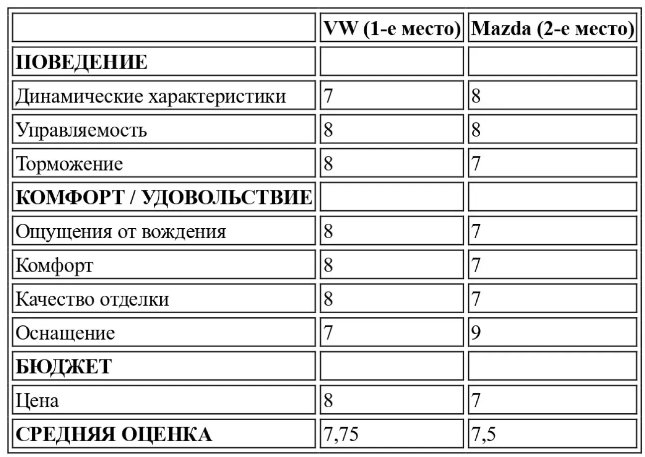 В эксплуатации, которую можно назвать обычной, без всякого пренебрежения, обе машины беспроблемны. Посадка водителя вполне приемлема, с небольшим плюсом в пользу Mazda, у которой, как мы упоминали, рулевая колонка регулируется по высоте. С точки зрения отделки или качества материалов салона, их трудно различить с первого взгляда. Мы склонны и здесь отдать небольшой бонус японской машине просто потому, что дизайн приборной панели более современный, более био-дизайнерский. Однако, как мы уже отмечали, на высокой скорости Golf тише. В городе у них одинаковые габариты, обе оснащены усилителями рулевого управления, и здесь разницу создает двигатель. На самых низких оборотах мотор Golf отзывается более мгновенно, а механизм переключения передач немецкого автомобиля, не будучи идеальным, все же лучше.