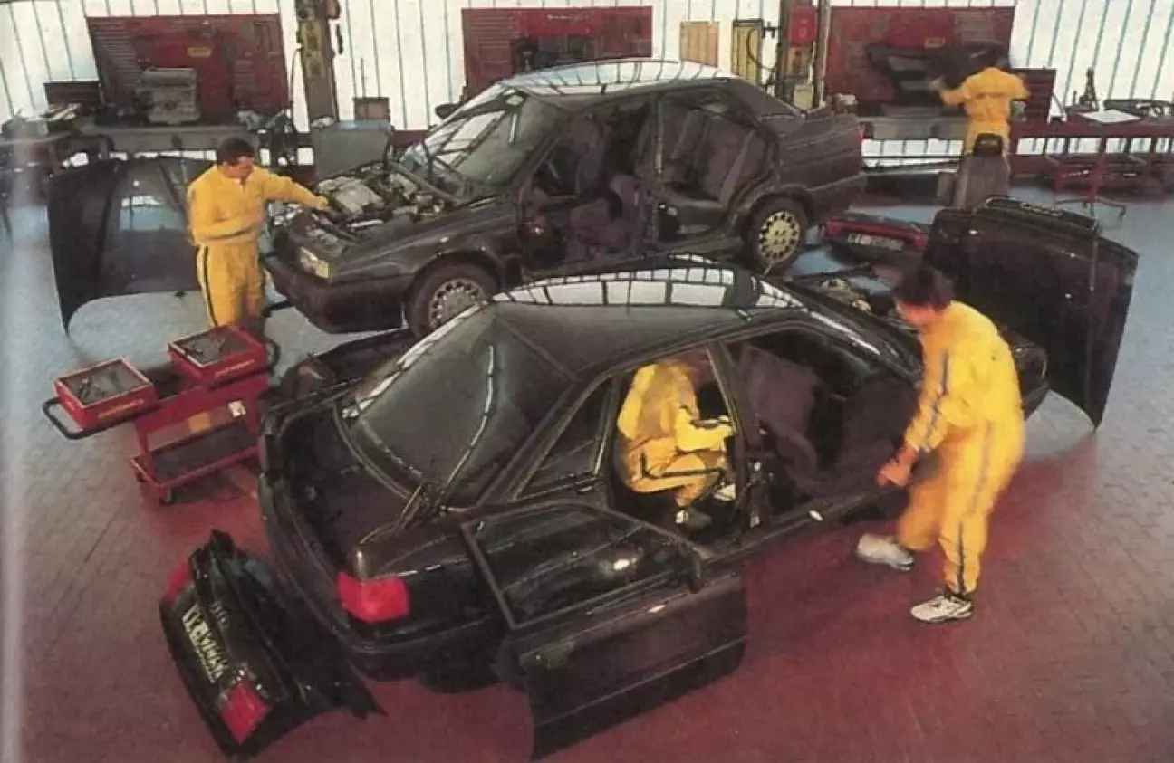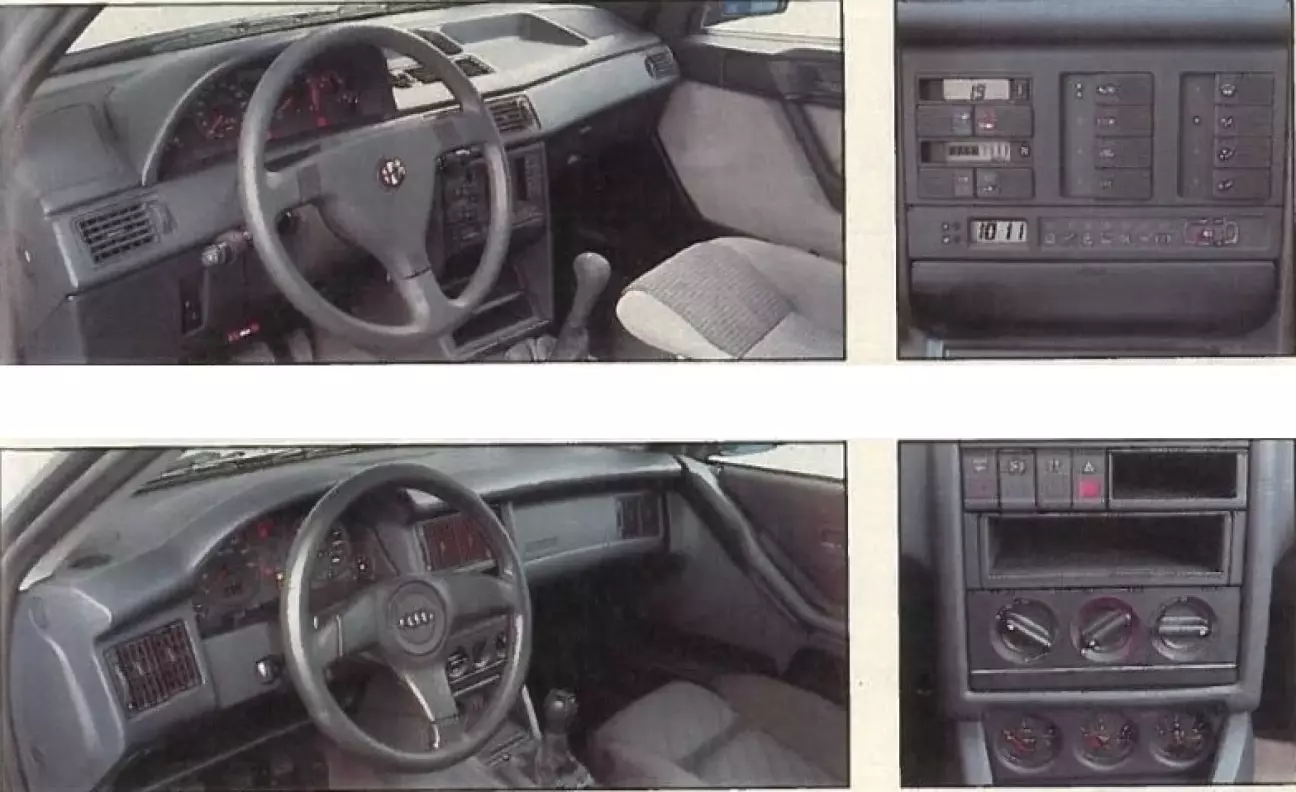 Когда в феврале прошлого года мы подвергли новую среднеразмерную Alfa тесту-качества, мы не могли не отметить некоторую неточность отделки как при сборке пластиковых компонентов, так и при сочленении металлических панелей. Двери не были должным образом выровнены с соответствующими проемами, и выбор некоторых материалов казался не слишком удачным. Однако у 155 было смягчающее обстоятельство: она была одним из первых экземпляров, сошедших с конвейера (номер шасси 2512) заводов в Помильяно д’Арко. Поэтому ей полагалось право на пересдачу. Какая лучшая возможность, чем это сравнение с Audi 80, могла тогда представиться 155, чтобы продемонстрировать свою состоятельность и с точки зрения качества? Немецкая марка, по сути, всегда гарантировала очень высокие стандарты и может служить значимой точкой отсчета для всего европейского производства.