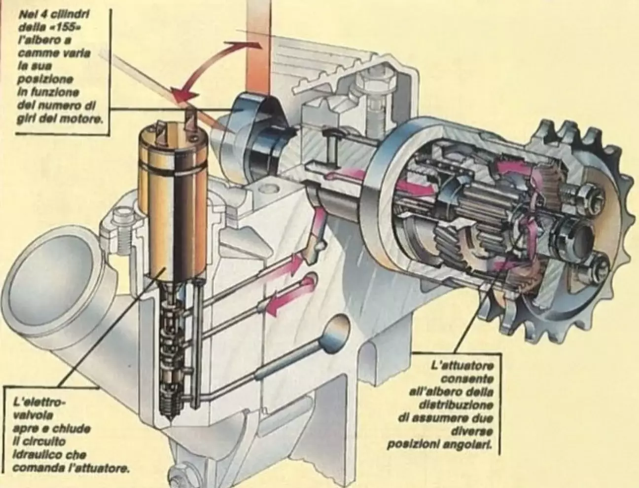 Итальянский агрегат полностью изготовлен из легкого сплава и использует все усовершенствования и улучшения, которые были внедрены в рамках проекта 155 для этого двигателя. Двухлитровый Twin Spark может похвастаться переработанной головкой блока цилиндров для оптимизации формы полусферических камер сгорания, обновленной версией фазовращателя (патент Alfa) и новой электронной системой управления впрыском, интегрированной с двухсвечным зажиганием (Bosch Motronic M 1.7). Не менее изысканным является 16-клапанный двигатель Audi/Volkswagen — рядный четырехцилиндровый агрегат, расположенный продольно, с двумя верхними распредвалами, приводимыми в действие зубчатым ремнем, и гидравлическими толкателями для автоматической регулировки зазора клапанов.