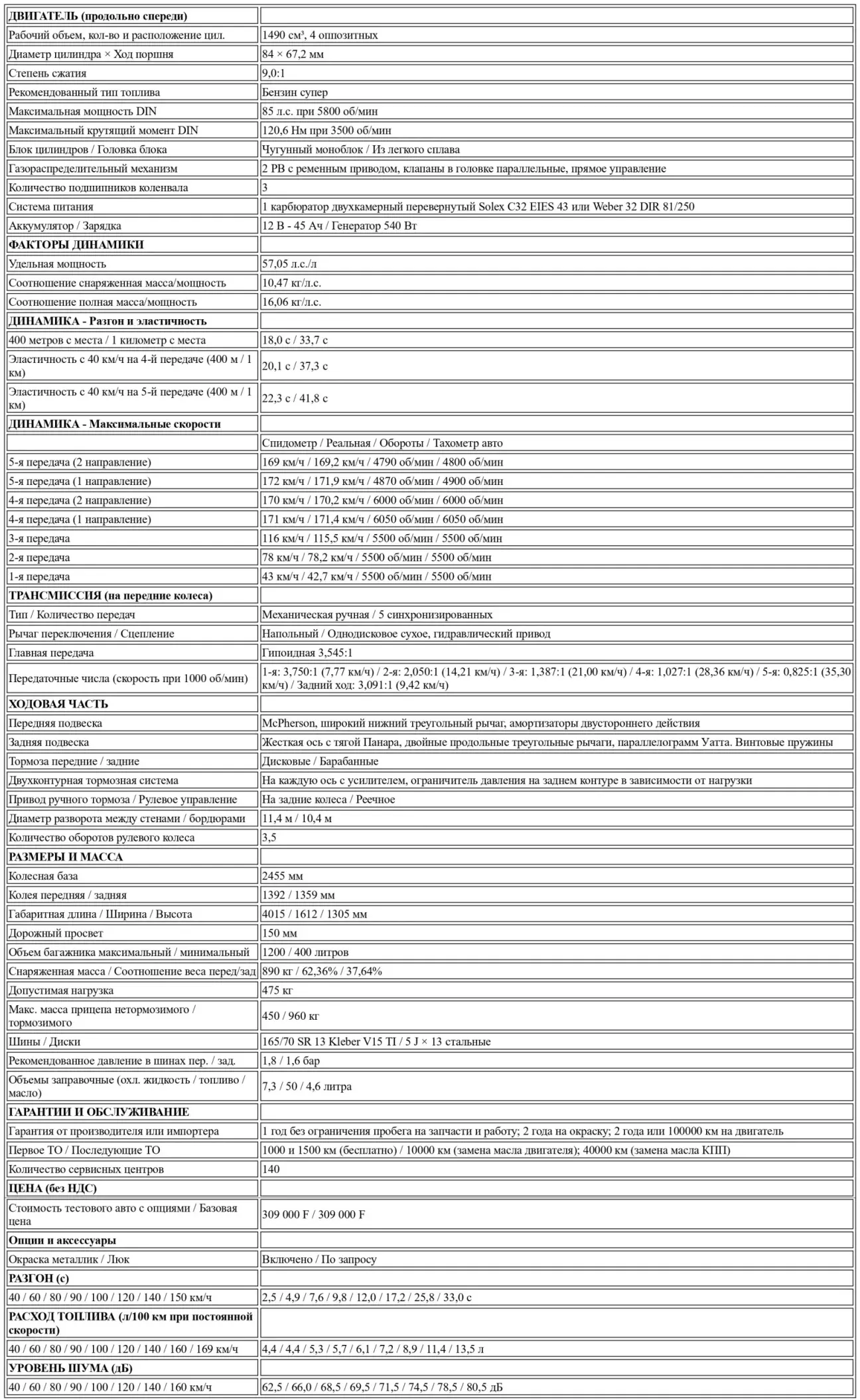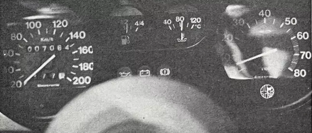 Максимальная скорость новой 33 должна была быть связана с ее дизайном. Производитель сообщает максимум более 170 км/ч. И это сведение вновь подтверждается нашими замерами, поскольку наш автомобиль смог достичь 170,21 км/ч на четвертой передаче, при 6000 об/мин, в то время как на пятой передаче он уступал всего 1 км/ч, показывая 169,21 км/ч, но на более спокойных оборотах 4800 об/мин. До сих пор мы охотно верили, что находим в 33 Sud в новом облике. Относится ли это к расходу топлива? Ответ — еще одно подтверждение сходства. При стабилизированных скоростях 33 1.5 оказывается разумно экономичной, показывая расход, заявленный заводом. При 90 км/ч она довольствуется 5,7 л/100 км (5,7 л/100 км также по данным завода), в то время как при 120 км/ч она требует 7,2 л/100 км (7,5 по данным производителя). В городе же автомобиль требует 9,9 л/100 км, что не является особенно малым расходом. Это уже были требования от Sud, но можно было надеяться найти лучшие цифры в 33, хотя бы за счет небольшой доработки системы питания при переносе мотора. Наш средний расход был в том же стиле: 11,1 л/100 км за весь наш пробег, с предельными средними значениями 10,1 и 12,7 л/100 км в зависимости от стиля вождения. Есть повод не быть полностью удовлетворенным, это понятно, но нельзя было требовать чуда от двигателя, который сохранил устаревшую систему впуска и выпуска. Простая деталь объясняет цифры: 1.5 Quadrifoglio требует 225 см3 для прохождения километра с места, что соответствует аппетиту в 22,5 л/100 км (конечно, фиктивный, но насколько интересный при сравнениях: кстати, не нужно далеко ходить, перелистните несколько страниц, чтобы сравнить с Mazda 323 GT, также 1490 см3, развивающей около 85 л.с....).