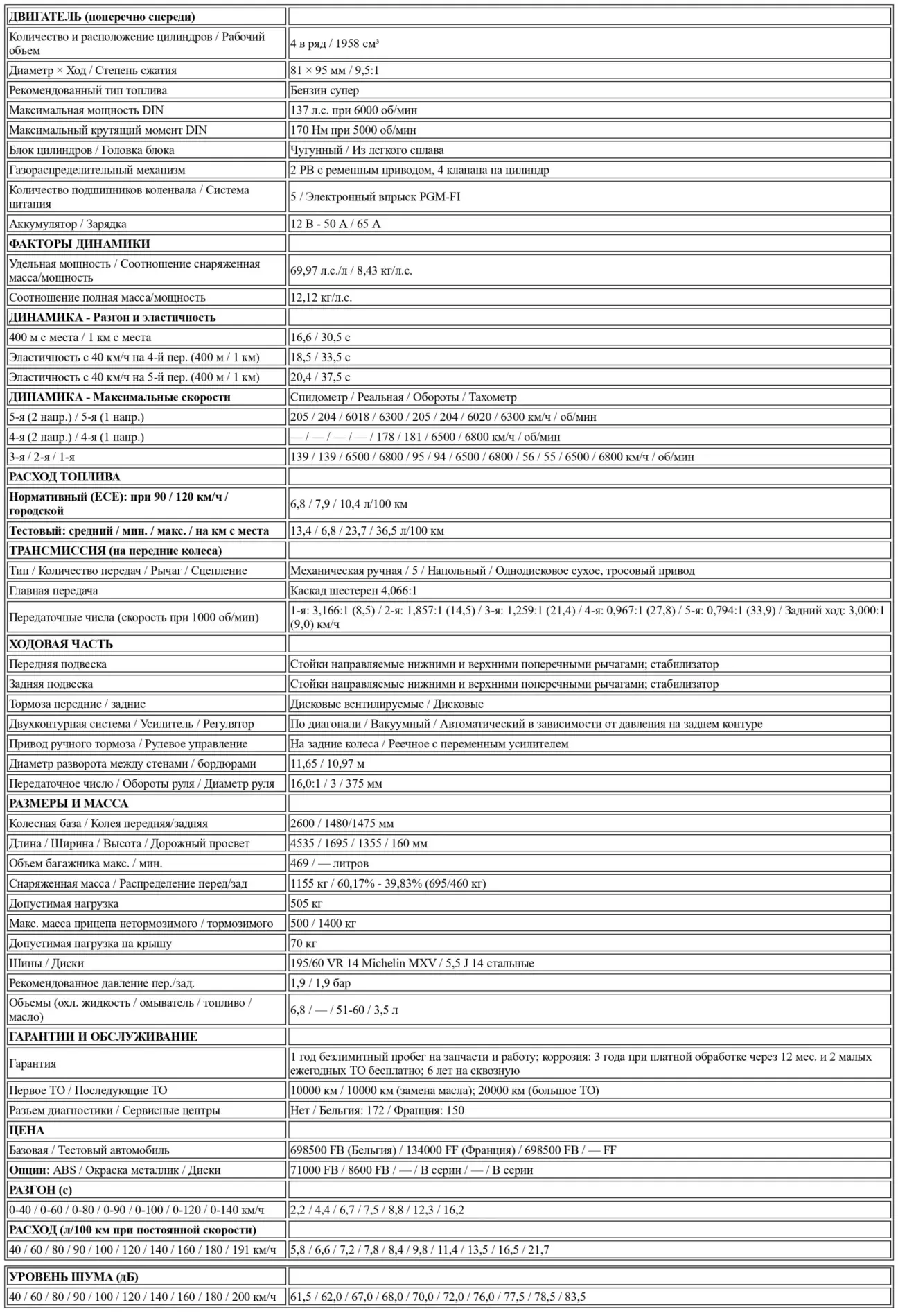На этот раз двигатель не принадлежит к семейству короткоходных. У него длинный ход поршня — 95 мм при диаметре цилиндра 81 мм. Эта техника обычно благоприятствует крутящему моменту на средних оборотах, но менее — высокой мощности при быстрых вращениях. Тем не менее, этот дьявольский мотор развивает максимальную мощность 137 л. с. при 6000 об/мин, что дает удельную мощность 69,9 л. с./л. Превосходная производительность... Его крутящий момент не менее впечатляющ: 170 Нм, но при 5000 об/мин. Вопреки ожиданиям, 2.0i-16 — не спортивный зверь, по крайней мере, не исключительно; он щедр на всех оборотах, реагирует очень бодро, но без насилия, демонстрируя равный динамизм во всем диапазоне. Он находится в лучшей форме за пределами 4000 об/мин и принимает свою задачу ниже этой отметки без какого-либо нежелания. Наши замеры даже выявили двойную кривую крутящего момента: 5000 об/мин составляет вершину, а 3000 об/мин — другую. Как еще лучше показать живость этого прекрасного мотора?