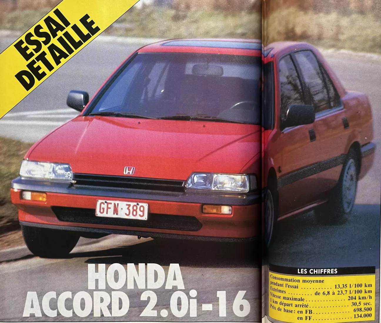 Перевод теста Honda Accord 2.0i-16 от бельгийского автомобильного журнального издания Le Moniteur de l’Automobile, № 871, Апрель, 1987.
