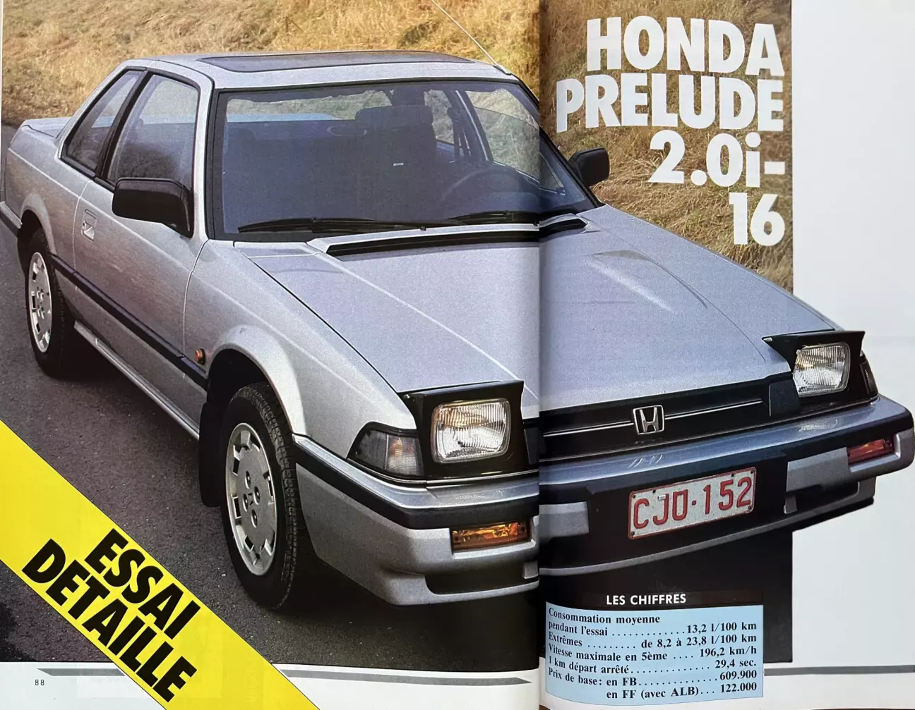 Перевод теста Honda Prelude 2.0i-16 от бельгийского автомобильного журнального издания Le Moniteur de l’Automobilе, № 844, Апрель, 1986.