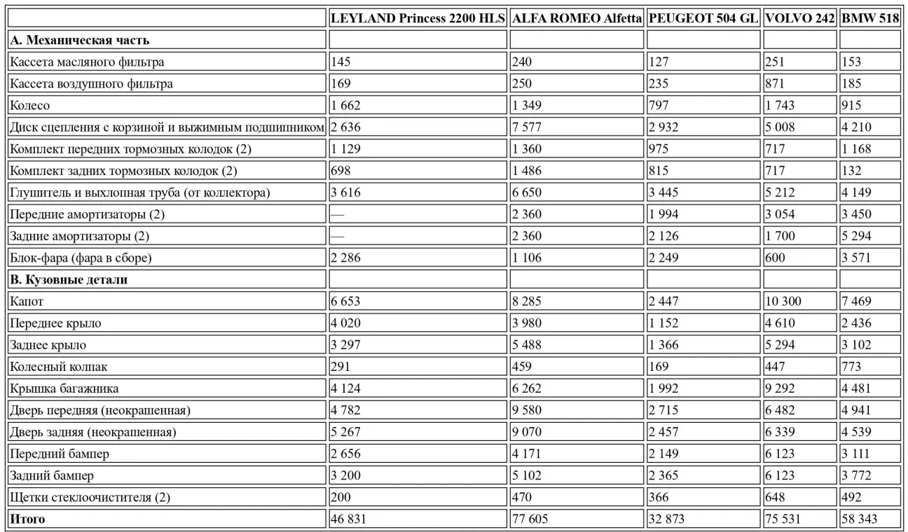 СТОИМОСТЬ ЗАПЧАСТЕЙ В СРАВНЕНИИ С КОНКУРЕНТАМИ