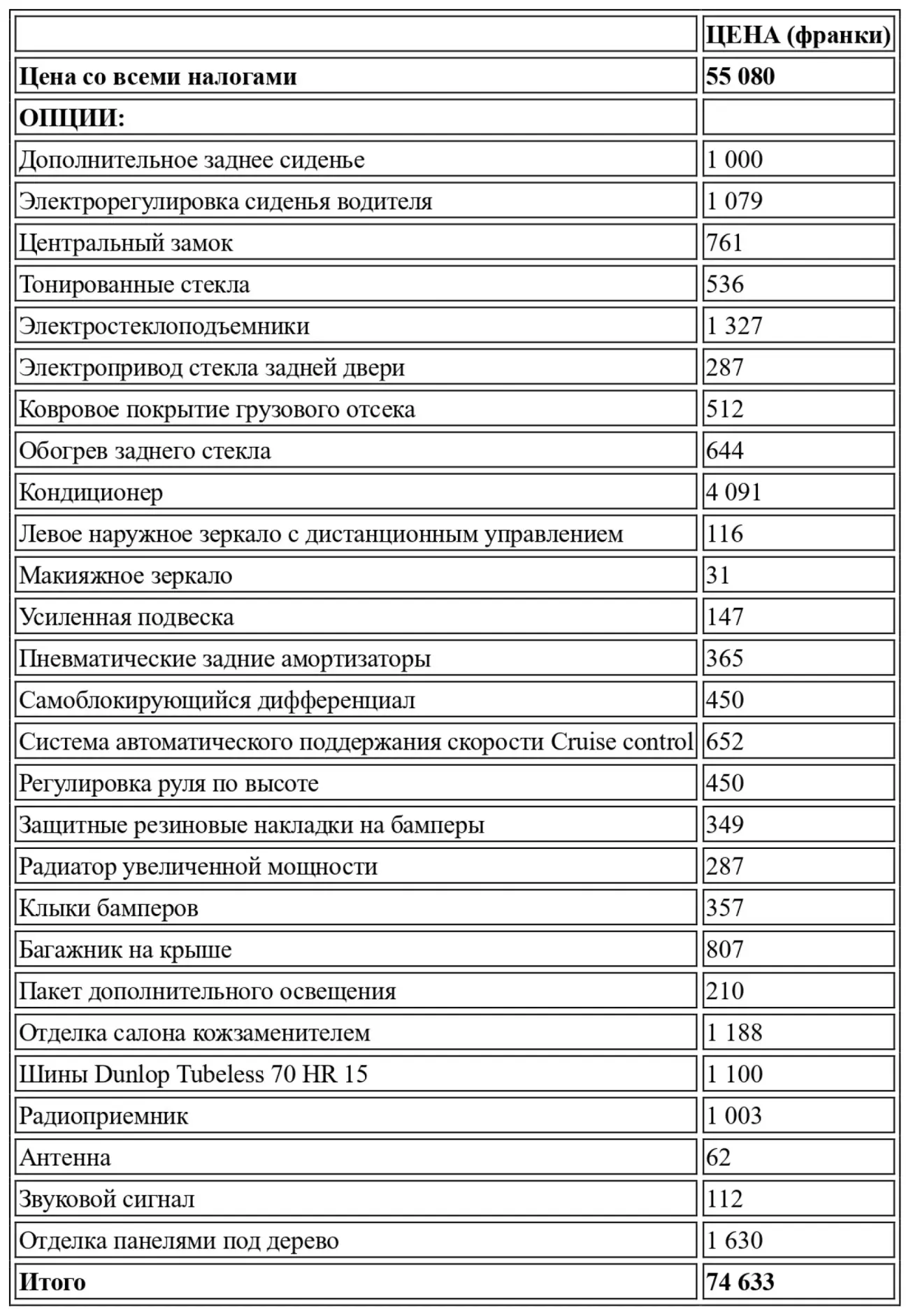 Мы выбрали для теста Chevrolet Caprice Estate, то есть версию в кузове универсал модели среднего по американским меркам класса, очень распространенной в США. Почему универсал? Да просто потому, что он одновременно является одним из самых практичных и, главное, самым большим из тех, что можно приобрести во Франции. Для примера: универсал Citroen CX или универсал Volvo имеют длину 4,90 м и 4,92 м соответственно, в то время как Caprice невозмутимо демонстрирует длину 5,44 м. Объем багажного отделения при сложенных сиденьях достигает 2470 куб. дм против 1900 у Volvo 265. Впрочем, одних этих аргументов было бы недостаточно, чтобы Caprice Estate мог тягаться с европейскими универсалами, если бы его цена не была сопоставима с ними. Опять же в сравнении с Volvo 265 DL, которая, несомненно, является европейским автомобилем, наиболее близким к американцам по философии, разница в цене относительно невелика. По каталогу Caprice стоит 55 080 франков, тогда как Volvo оценивается в 67 500. Однако стоит сразу заметить, что бесчисленные опции, почти все из которых являются обязательными, поднимают цену Caprice до 74 633 франков. Мы не удержались от удовольствия расписать их вам подробно: вы наверняка оцените макияжное зеркало, предложенное за скромную сумму в 31 франк. Фактически Caprice Estate, продаваемые во Франции, оснащены практически всеми этими опциями. Надо признать, что одной лишь функциональности было бы недостаточно, чтобы соблазнить клиентуру.