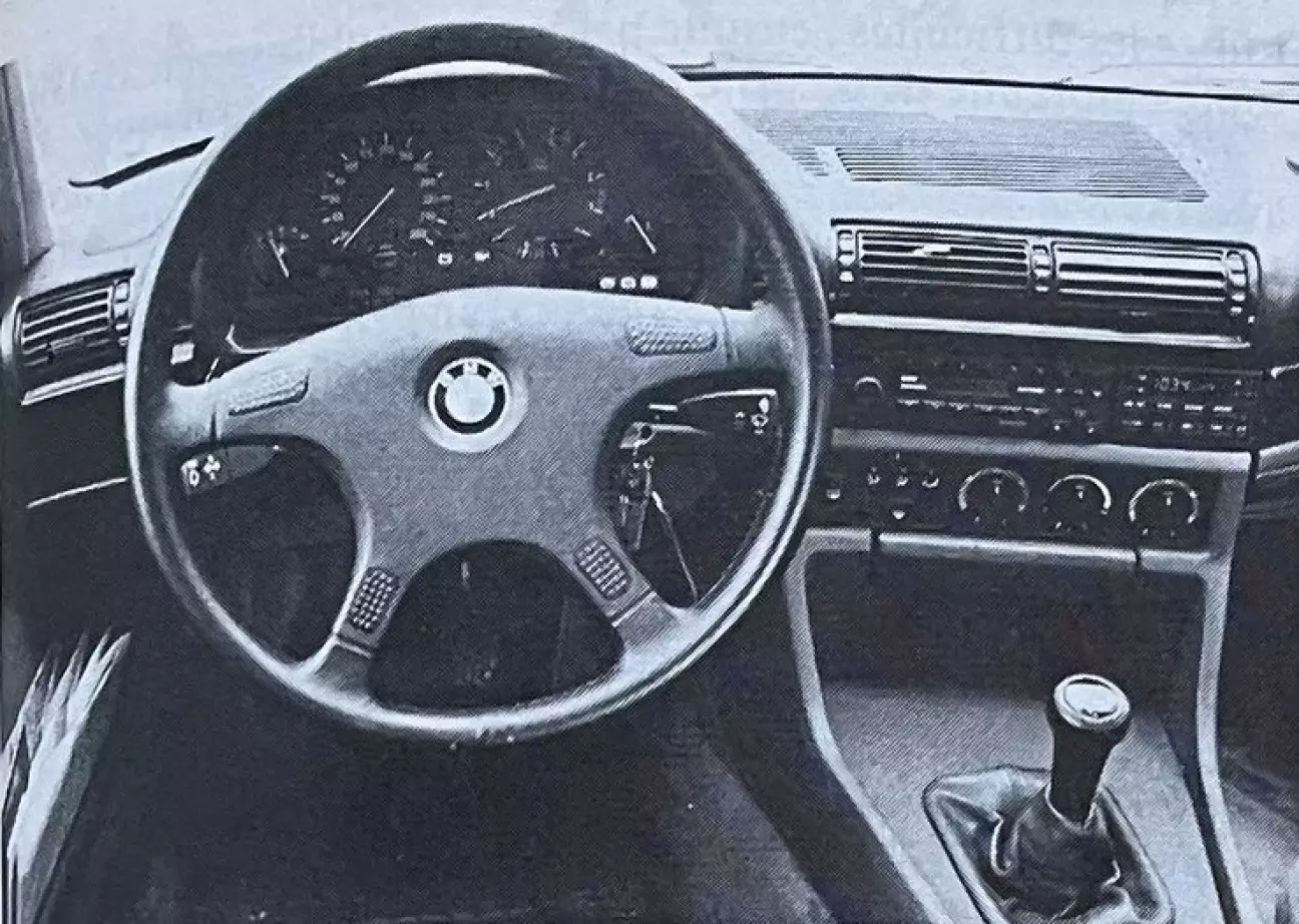 Приборная панель, классическая для BMW, поначалу разочаровывает. На ней лишь спидометр, тахометр, указатель уровня топлива, термометр охлаждающей жидкости и несколько ламп. Лишь при втором осмотре открываются добрые намерения BMW. Жидкокристаллический дисплей при включении зажигания показывает приближение следующего ТО. Другое табло, более крупное, но столь же неброское, следит за всеми жизненно важными функциями машины; оно заявляет о себе лишь при возникновении неполадки, сопровождая это звучным гонгом для привлечения внимания водителя. Сообщения на этом табло выводятся на языке, выбранном водителем. Табло также выводит, по запросу водителя нажатием вдоль рычага поворотников, информацию бортового компьютера (упрощенного, но столь же эффективного и точного), расположенного в центре панели. Больше не нужно отпускать руль или отводить взгляд. Органы управления хорошо продуманы, доступны кончиками пальцев. Мы, однако, пожалели о форме выключателей фар и противотуманок — рычажки с неудобным вертикальным ходом. Вызывает сожаление и наличие в списке опций для Бельгии радиоподготовки — экономия, недостойная машины такого класса, которую невозможно представить без аудиосистемы. Зато хитростью является антенна, вмонтированная в заднее стекло.