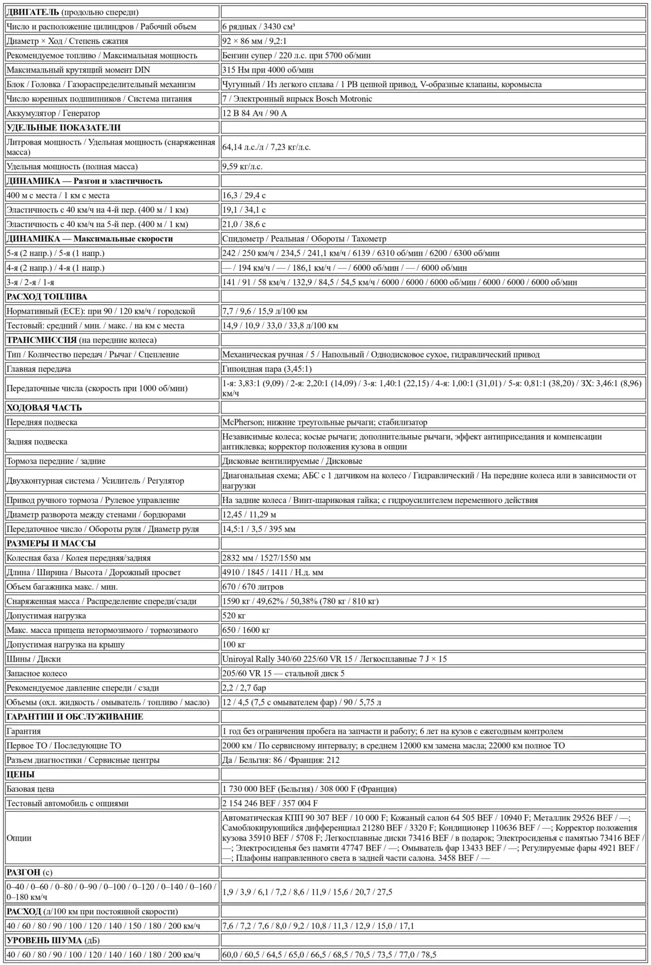 У 735i есть все, чтобы нравиться! В базе и особенно в опциях. У нее есть стиль даже в салоне, где атмосфера BMW не была принесена в жертву. Некоторые хотели бы, чтобы все немного изменилось; убежденные приверженцы марки — меньше. Мы признаемся, что относимся к последним, тем более что подвески удались; они мягкие, но глотают неровности дороги с приятной плавностью без излишней расхлябанности. Салон впечатляет своим простором, светлым объемом и хорошей организацией, где толика фантазии, впрочем, не помешала бы. Впервые садясь в 735i, верный поклонник BMW с удивлением обнаруживает, что все находится с первого взгляда. Лишь со временем он откроет для себя новшества и детали.