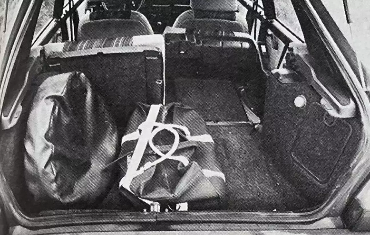 Если не повторять в сотый раз, что кузов Delta во многих моментах выдает свой возраст, то здесь обнаруживается вторая крупная слабость модели HF 4WD: объем багажника просто смехотворен. Он не только теряет почти 25% емкости из-за громоздкого заднего дифференциала и приводов, но и то немногое, что осталось, сокращено присутствием запасного колеса, стоящего вертикально слева. К тому же запаска — временная («докатка»), что просто недопустимо, учитывая назначение и возможности автомобиля. К счастью, заднее сиденье складывается по частям (сначала подушка, затем спинка), а проем багажника доходит до бампера, что все же придает машине некую практичность.