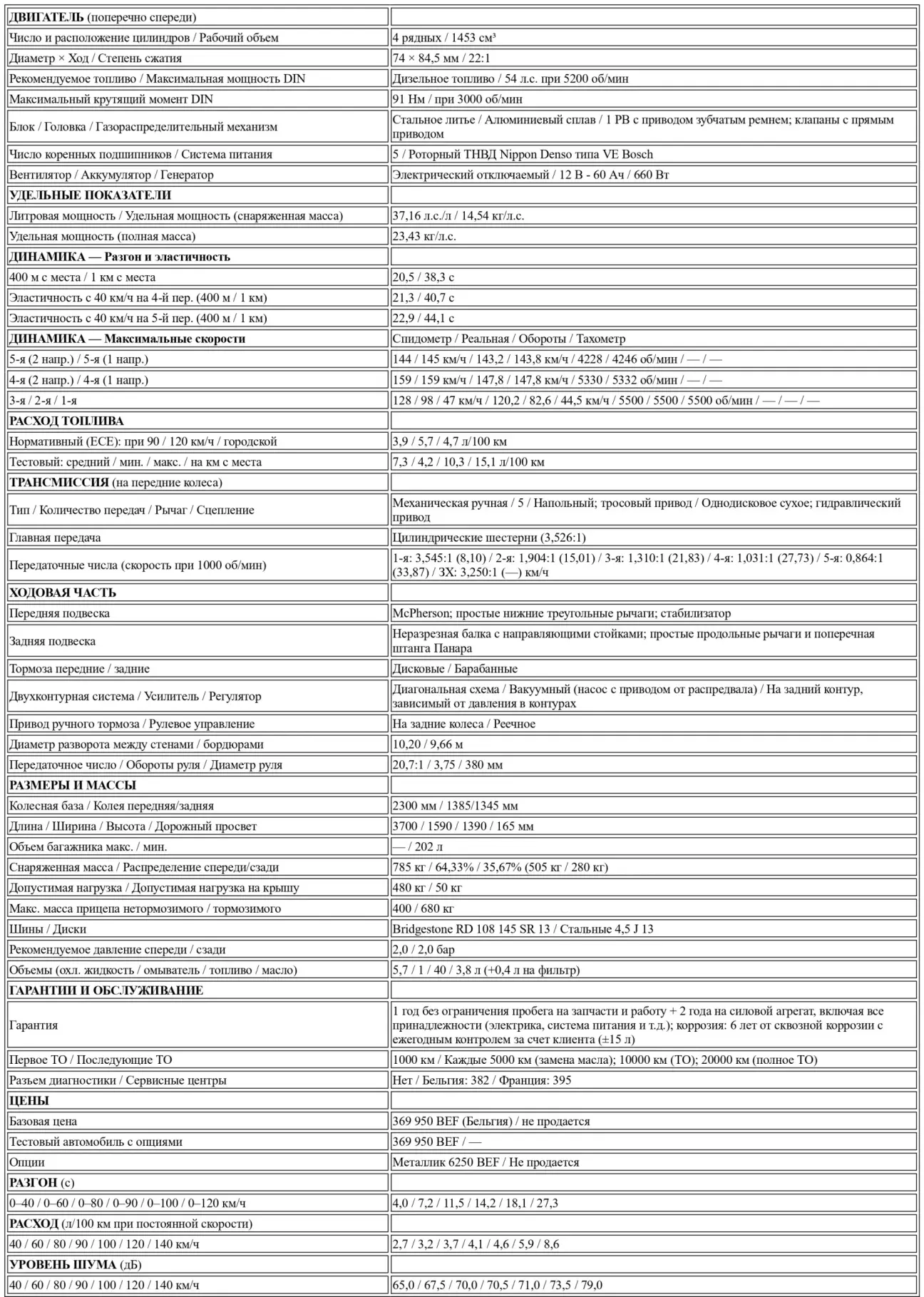 ДОСТОИНСТВА: Комфортабельный малолитражный дизельный автомобиль (шумоизоляция, передние кресла, эргономика салона и пр.). Эластичный или мощный двигатель (*)... Работа механизма переключения передач. Приятное и точное рулевое управление. Поведение на дороге.
