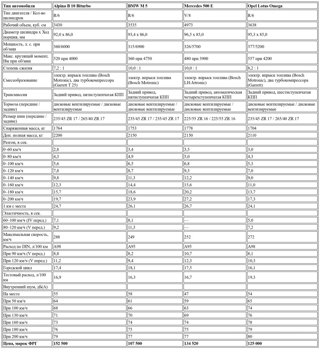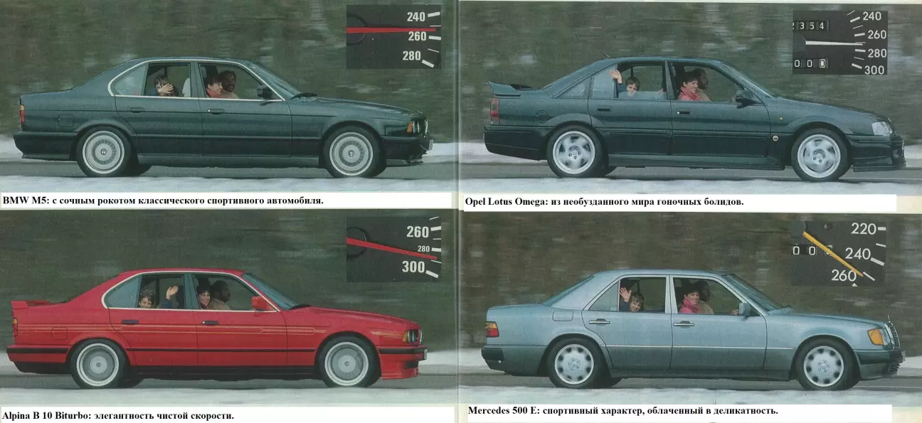 BMW M 5, Alpina B 10, Mercedes 500 E и Opel Lotus Omega приглашают на семейную прогулку со скоростью 250 километров в час или даже выше. Невольно возникает вопрос: а в чем, собственно, смысл этого стремления?