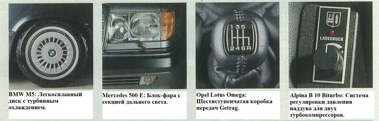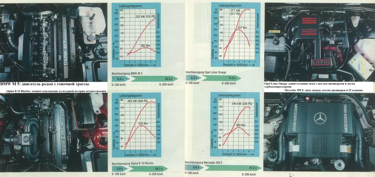 Перевод теста-сравнение BMW E34 Alpina B10 Biturbo, BMW E34 M5, Mercedes W124 500 E, Opel Lotus Omega от немецкого автомобильного журнального издания Auto Motor und Sport, № 03, 1991.