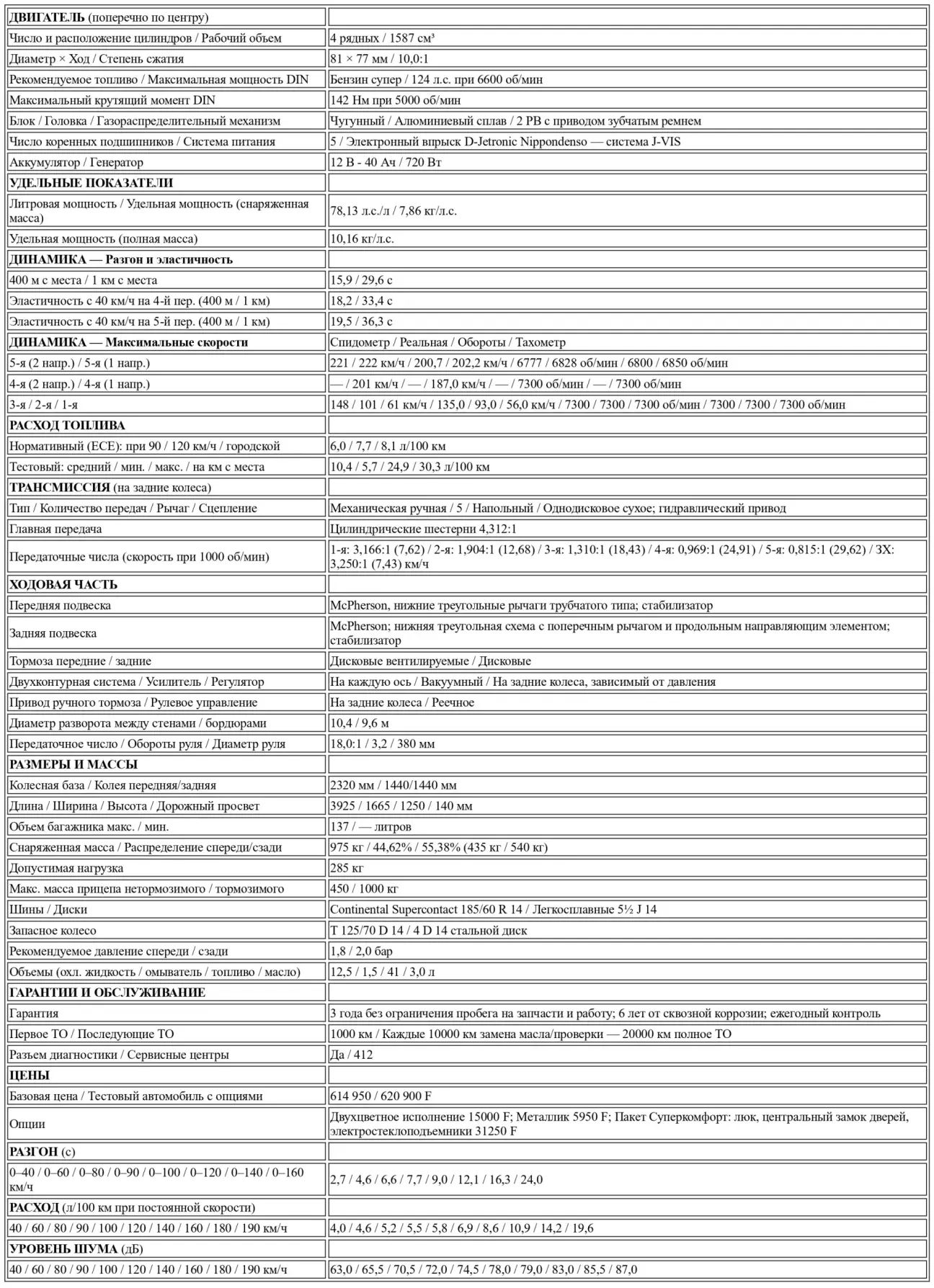 ДОСТОИНСТВА: Приятный и тяговитый двигатель. Удачно подобранные передаточные числа КПП. Жесткий кузов. Великолепная управляемость.