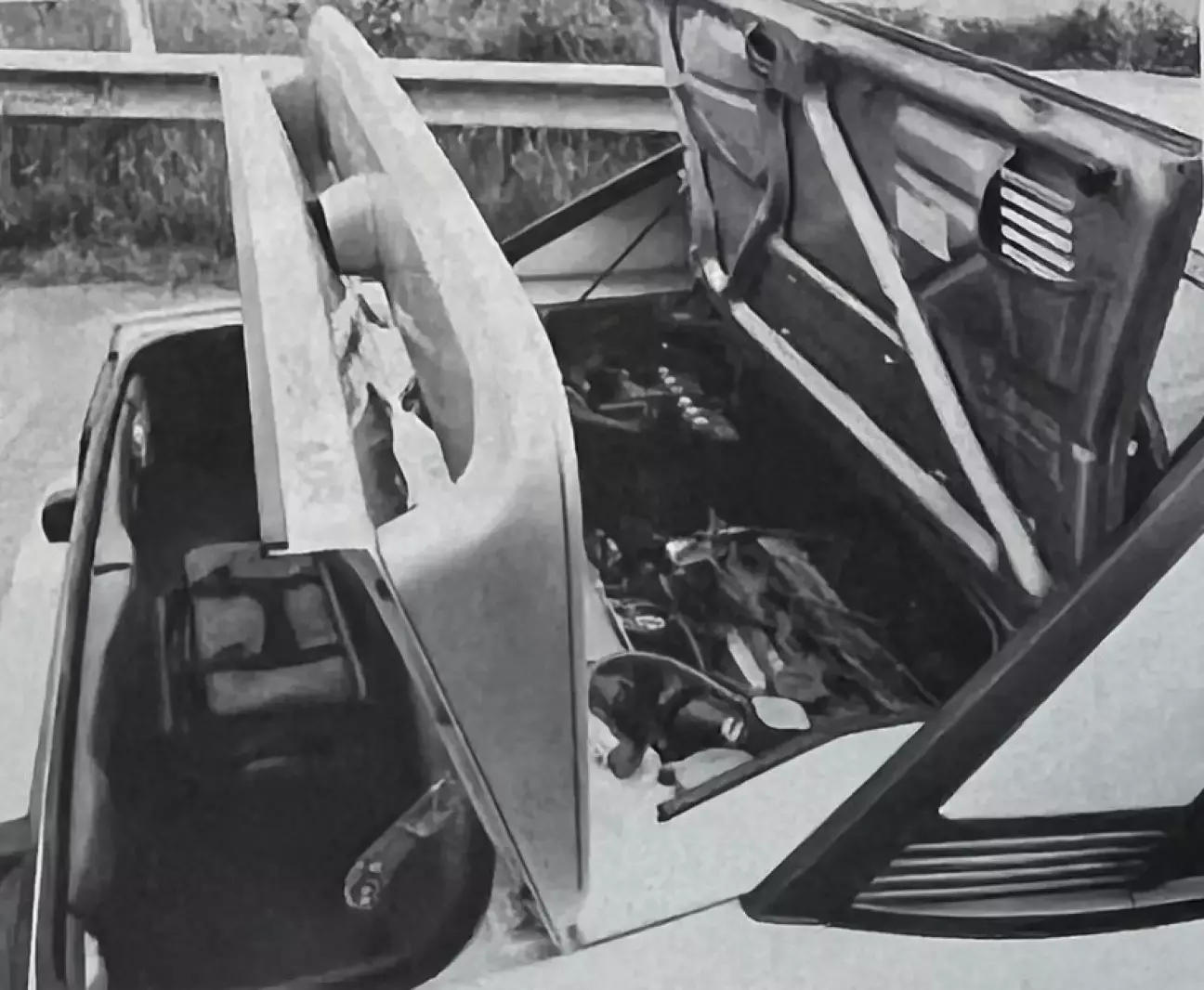 Передняя часть автомобиля имеет сильно выраженный клиновидный профиль. Под капотом скрываются радиатор охлаждения (размещенный в зоне наилучшего обдува, что не исключает помощи двух отключаемых электроветиляторов), временное запасное колесо (место нужно было экономить любой ценой!) и ниша для небольшого багажа. Настоящий багажник находится в самой задней части кузова, в третьем объеме MR. Это отсек угловатой формы, удобный в использовании, расположенный между двигателем и задней панелью. В случае сильного удара сзади багажник пострадает первым... Это не лишает его полезности: он вмещает багаж двух взрослых при условии использования мягких сумок. Объемное антикрыло на кромке багажника — не просто плод воображения японских стилистов. Оно несет реальную пользу. Другой спойлер из прозрачного пластика, более скромный, расположен над задним стеклом — в продолжении моторной перегородки. Он позволяет потоку воздуха, стекающему с крыши, отрываться от кузова без завихрений, что исключает риск намокания стекла в случае дождя.