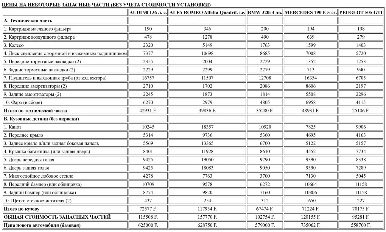Средний расход Audi 90 2.2 не удивляет! Он составил 11,7 л/100 км за всё время нашего теста, несмотря на постоянное использование всех технических возможностей. Иными словами, мы не отказывали себе в удовольствии ехать в том темпе, который предпочитает этот прекрасный седан. Тем не менее, расход на различных скоростях не давал повода для жесткой критики. Наш автомобиль — всё такой же молодой, как и несколько строк назад — потребовал 6,7 л/100 км при 90 км/ч и 8,7 л/100 км при 120 км/ч, что близко к цифрам производителя (6,5 и 8,4 л/100 км). В городе Audi 90 2.2 потребовала 12,1 л/100 км, что немало! Эти данные дополнились аппетитом при полной нагрузке и максимальном ускорении — 27,3 л/100 км, что отнюдь не впечатляюще мало. Напротив! Последние цифры экстремального расхода: 7,1 л/100 км при экономичной езде и 14,7 л/100 км в режиме «ралли». На самом деле, восторгаться нечем… и все же! Новый мотор 2,2 действительно подстрекает ехать спокойно, что снижает средний расход. Доказано…