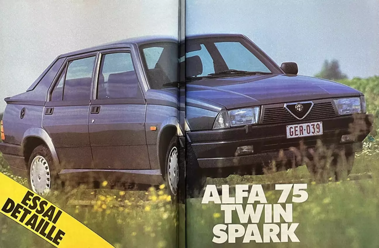 Перевод подробного теста Alfa Romeo 75 2.0 Twin Spark от бельгийского автомобильного журнального издания Le Moniteur de l’Automobile, № 880, Август, 1987.