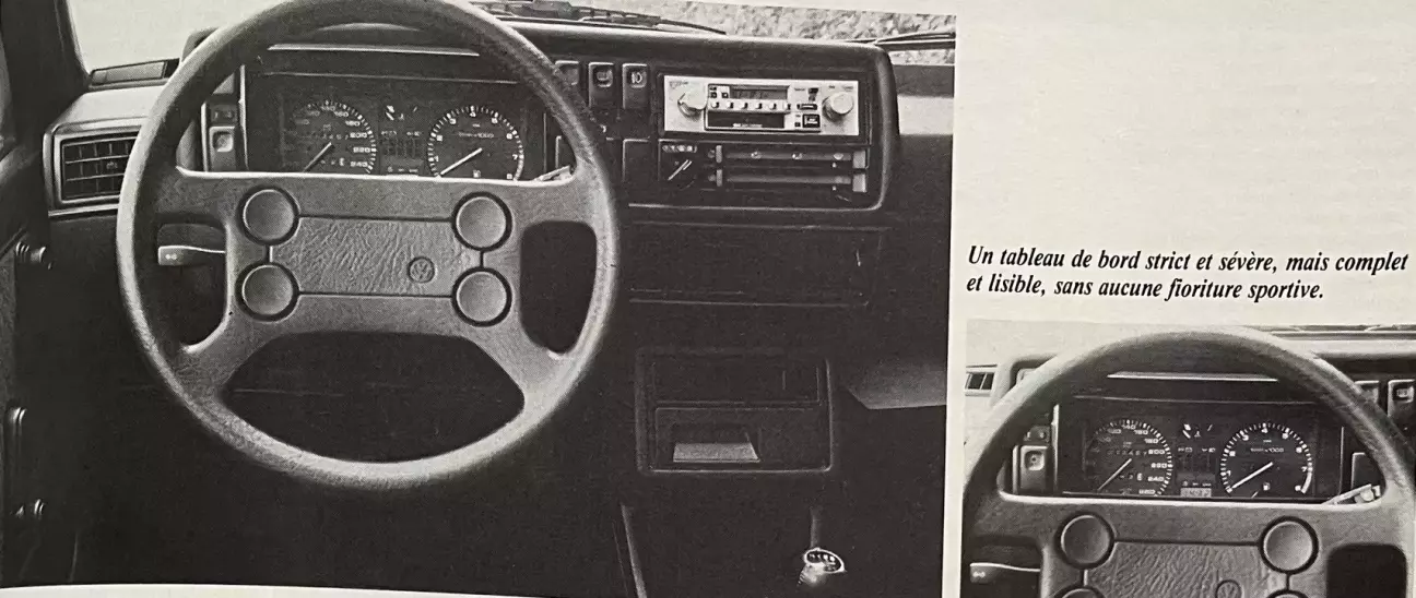В этом плане Jetta GT 16V подтверждает желание своих создателей быть солидным седаном. Никакого спортивного декора, никакой специфической аппаратуры. Приборная панель объединяет очень читаемые циферблаты: спидометр, тахометр, указатель уровня топлива и термометр охлаждающей жидкости, не забывая о традиционных контрольных лампах. Цифровые часы расположены в основании приборов. Они дополнены в серийном оснащении чрезвычайно практичным бортовым компьютером. Этот компьютер имеет два модуля памяти: первый отслеживает поездку, начатую в начале «дня» (после продолжительной остановки автомобиля); второй фиксирует данные с момента обнуления водителем. Нажатием на торец рычага стеклоочистителей компьютер выводит время в пути, среднюю скорость, средний расход, температуру моторного масла или наружную температуру. Органы управления всё так же легки и приятны, если привыкнуть к часто используемым качающимся переключателям.