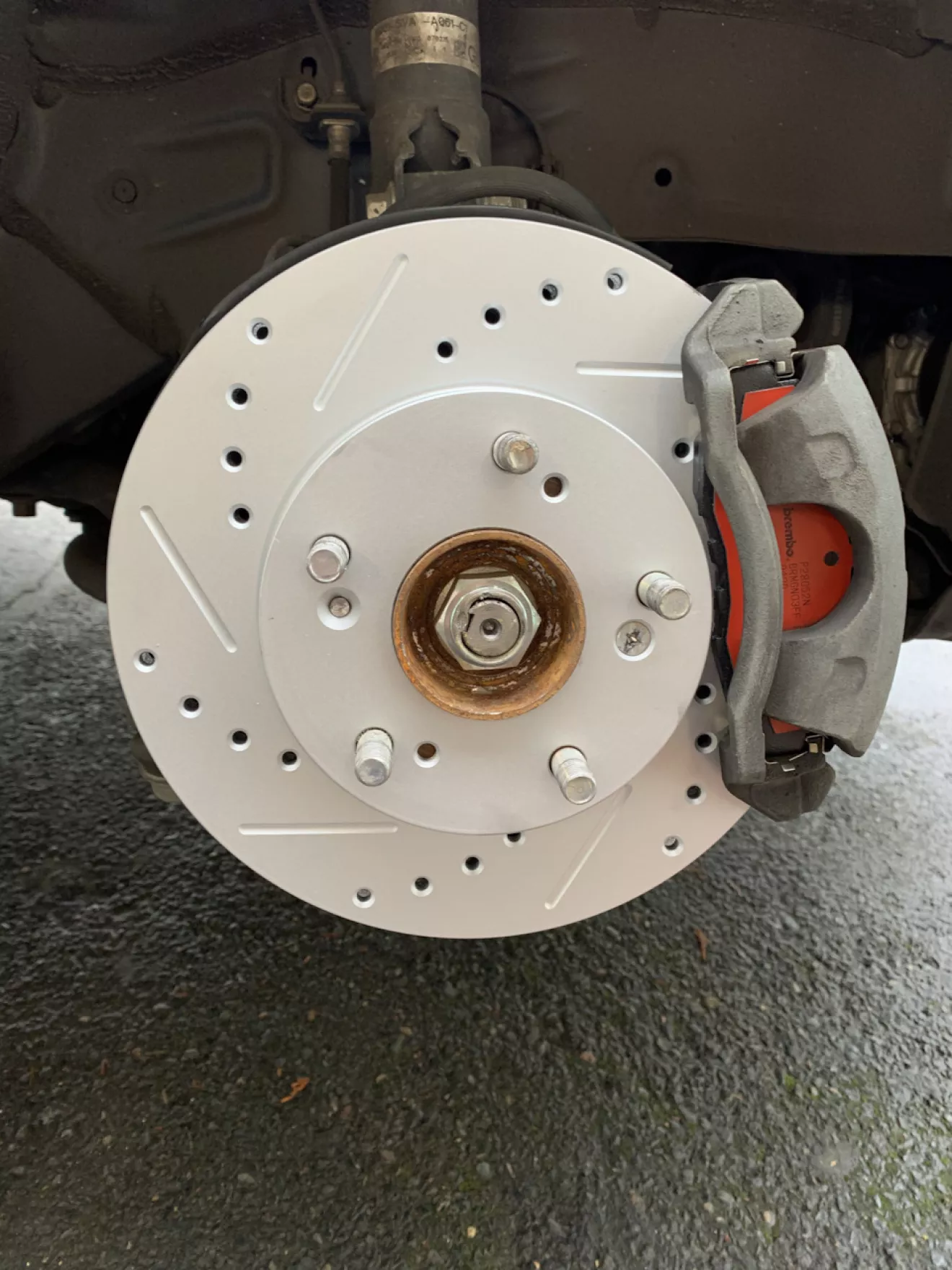 Так как Civic моего сына, совсем не спортивный, а всего лишь стоковый 1.8, а погонять, как любой парень в 19 лет, он любит. Так вот хоть и не спорт, а тормоза надо хорошие. Установлен комплект тормозов Brembo, диски и колодки. Суппорта естественно родные. Теперь нарадоваться не может.