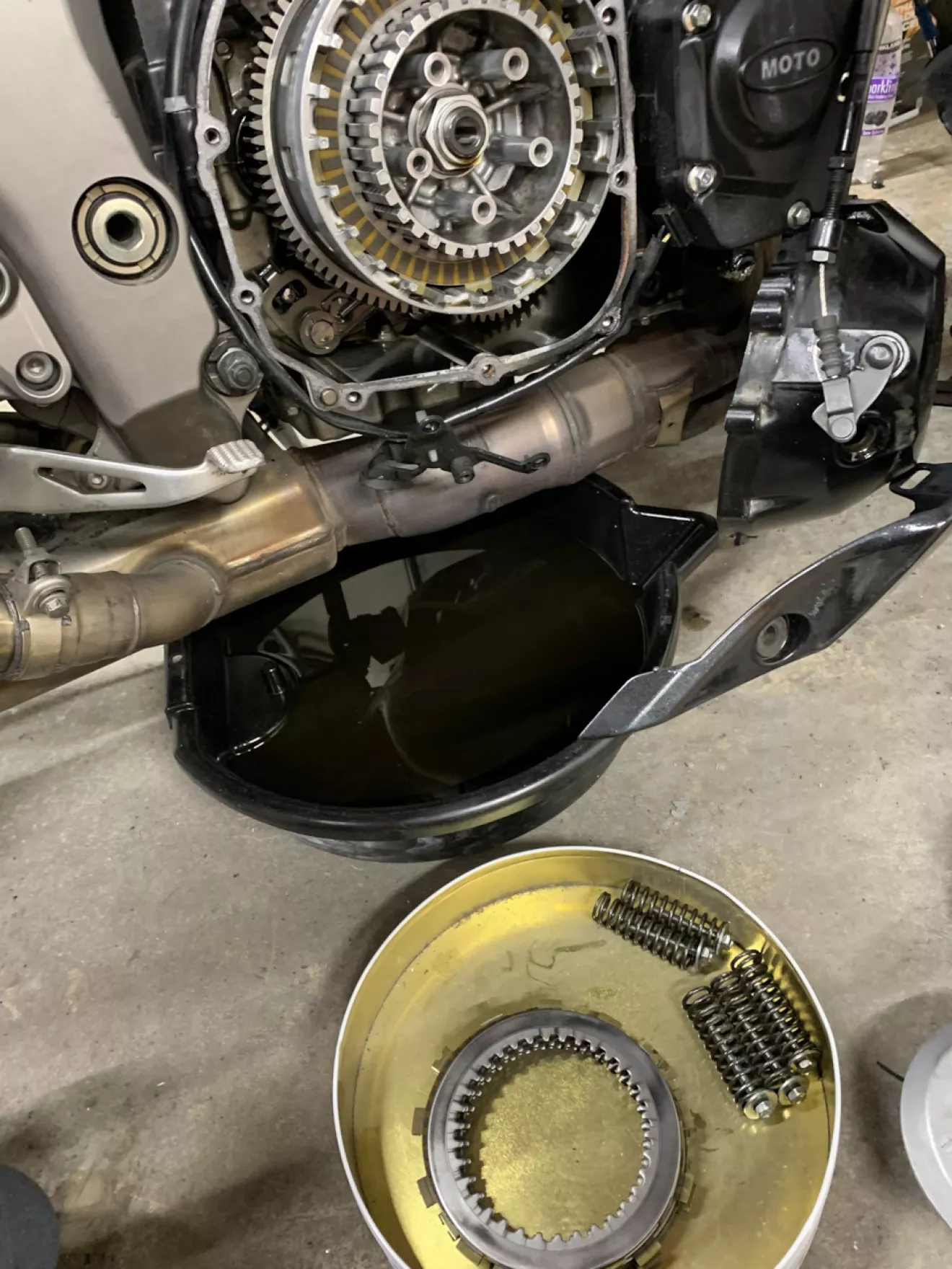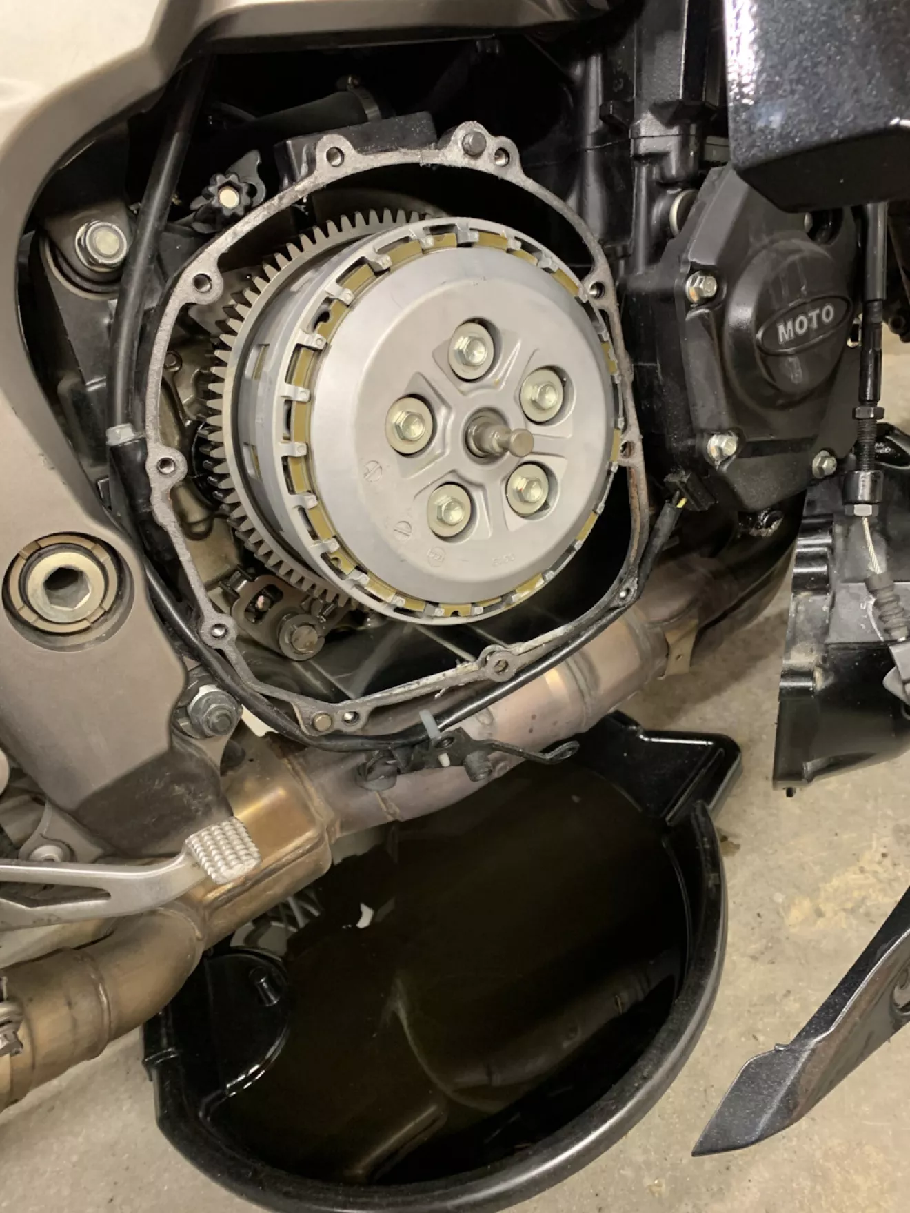 И так, имеется мотоцикл на котором очень жёсткое сцепление и грохот в районе сцепления. Ninja 1000 он же Z1000SX 2011 года. Очень мало информации по этому мотоциклу, по крайней мере на русском языке. Пересмотрел кучу видео по замене сцеплений на различных мотоциклах и не нашёл никакой полезной информации. На одном из YouTube каналов, нашёл видео отчёт по замене сцепления на Versus 1000, так вот там человек, чтоб у него ручки не болели, сказал, что затяжка болтов корзины сцепления 14Nm. Я так и сделал и что вы думаете, болт просто свернуло и пришлось снимать полностью всё сцепление и высверливать этот болт. Благо в гараже нашлось два длинных болта М6, как раз столько я успел растянуть. Так вот, момент затяжки этих болтов 10Nm это около 1Кг/м. И то это при условии, что болты новые, на старые болты можно не более 8Nm. С таким же усилием зажимайте и крышку двигателя.