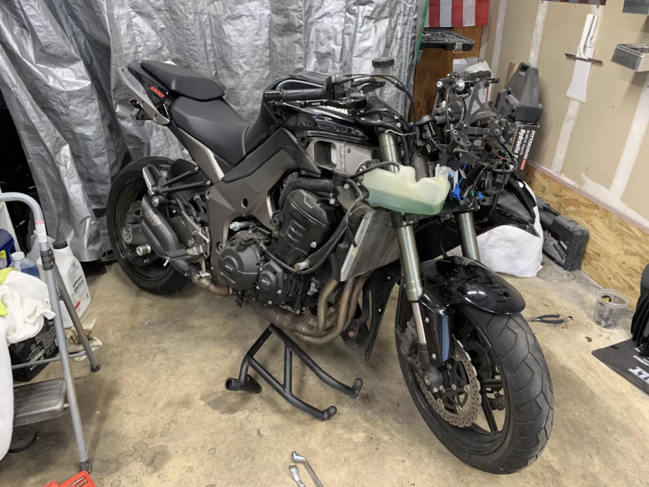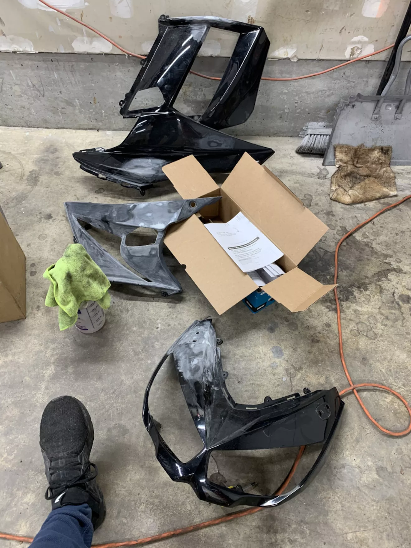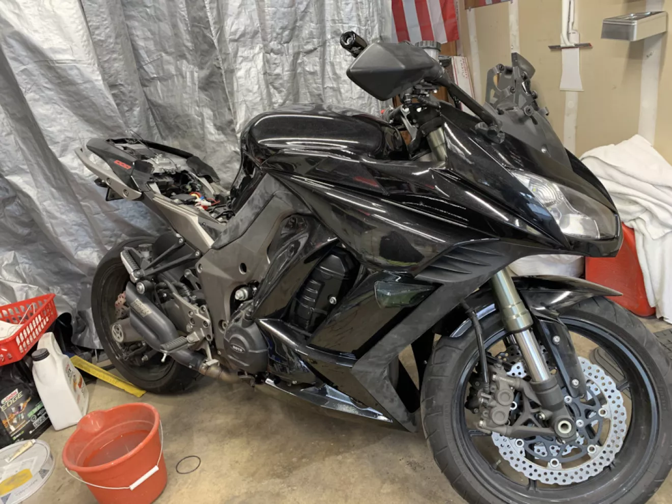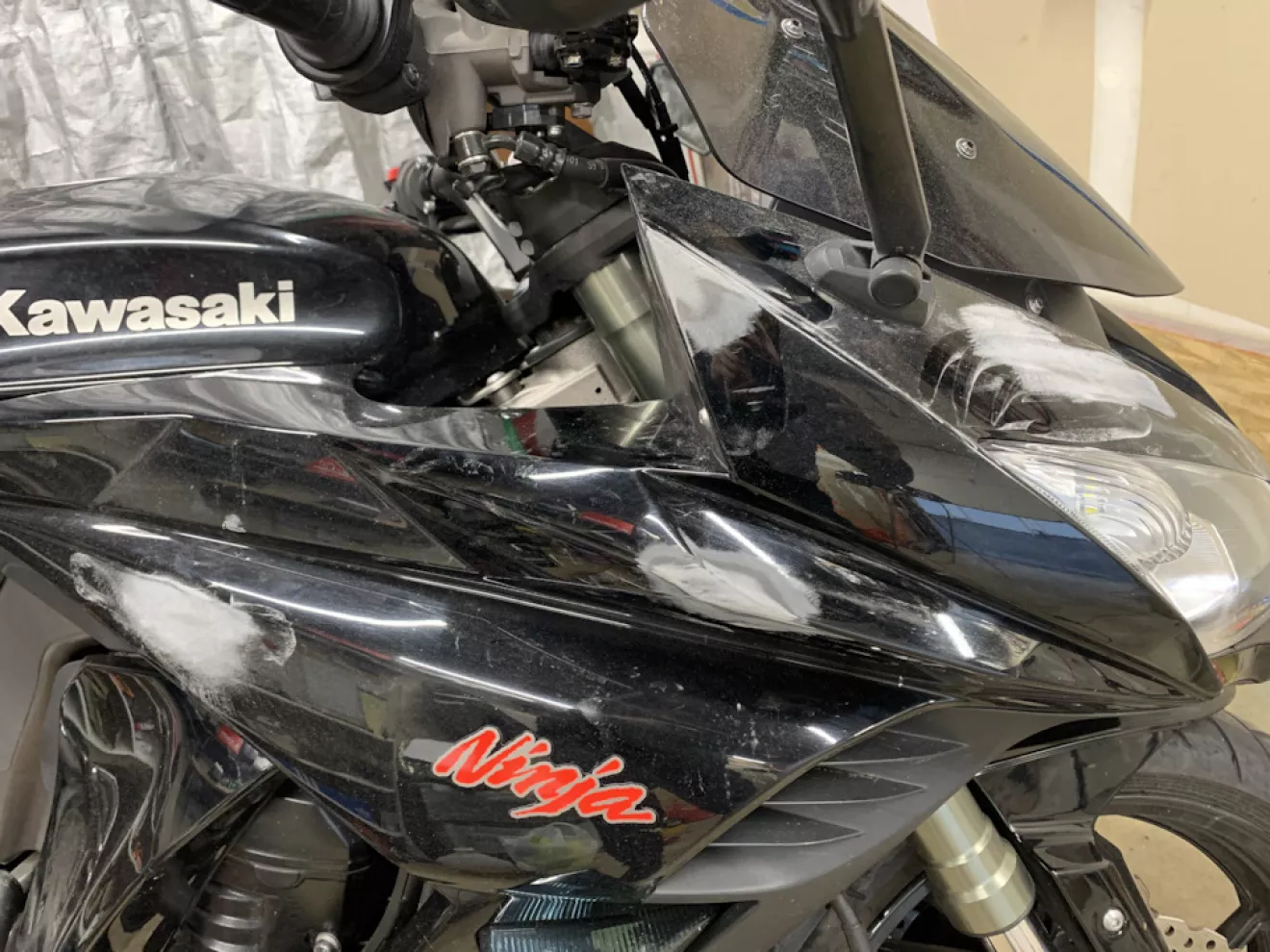 Было пару царапин и вмятина на баке. Так достался от предыдущего хозяина.Долго определялся с цветом, но решил оставить чёрным. Единственное что добавил металлик, а был просто чёрный.