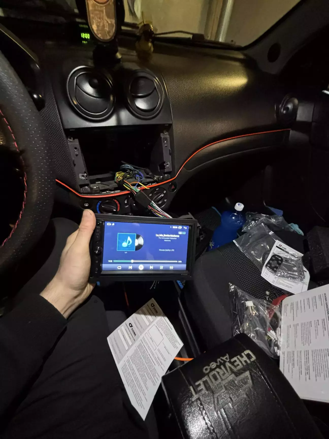 Спочатку конфіг був простенький а саме в дверях 13 рідні динаміки, у задній полці 16 теж рідні. Були знайдені через деякий час 16 старенькі піонери, залетіли у задню полку, ще через декілька тижнів у тієї ж людини знайшлися 13 піонери, залетіли в двері, поїздив з місяць так і зрозумів, що мені мало низьких частот😂. Через друга знайшов у сусідньому місті активний саб містері, був куплений за 3к грн +750 грн дроти для підключення. Їздив так майже рік та прийшла ідея закинути назад овали, подумав, подумав купив овали Циклон FX-693 після різанини задньої полки вони туди залетіли зі свистом. Тут я зрозумів що у меня залишаються 16 круглі динаміки, вирішив закинути їх у двері через проставки, а за одне і вкинути маленькі твітера у стійки. В завершення замінив голову, раніше стояв старенький кенвуд який ну прям дуже гарно грав але у погоні за функціоналом встановив 2-din android Sigma F7232. В планах трішки зашумити і ще де що) Далі буде….