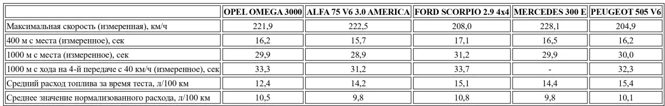 Для начала несколько цифр, чтобы лучше охарактеризовать этот большой седан: 177 л.с. при 5600 об/мин, что дает вполне среднюю удельную мощность 59,6 л.с./л, но при этом отношение веса к мощности составляет менее 8 кг/л.с. — точнее, 7,74 кг/л.с.! Добавьте к этому солидный крутящий момент 240 Нм при 4400 об/мин, а также короткоходную конструкцию двигателя, способствующую высоким оборотам и азартному характеру. На бумаге придраться не к чему! Оказавшись на дороге, и особенно на автомагистрали — истинной стихии этого крейсера, Omega 3000 раскрывает удивительные возможности. Прежде всего, это очень высокая максимальная скорость 221,9 км/ч (завод заявлял 222, обещание выполнено!), которая быстро достигается на пятой передаче при 6000 об/мин (на 400 об/мин выше режима максимальной мощности). Но также впечатляет способность неограниченно долго поддерживать крейсерскую скорость порядка 180–200 км/ч с удивительной, а порой даже обескураживающей легкостью. На высокой скорости машина буквально прилипает к дороге, а покой в салоне нарушает лишь характерный рокот большой рядной «шестерки». Поражает также курсовая устойчивость на максимальной скорости, отсутствие шума качения или аэродинамических свистов и, прежде всего, чувство безопасности, в то время как спидометр всегда льстит водителю на 10%... Что ж, тем лучше — азарт только возрастает.