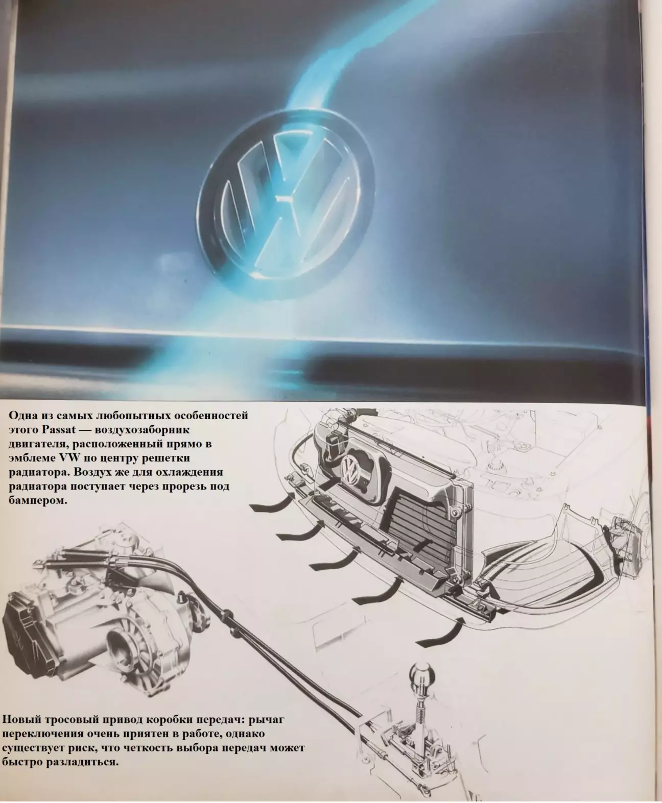 Шасси разработано так, чтобы обеспечить ходовые качества и вместимость салона, достойные современного седана... Да, стоит сказать сразу: между старым и новым Passat нет ничего общего, кроме названия. Сравнивать новинку, решительно опередившую свое время в нескольких областях, с предшественником, столь же решительно от него отставшим — напрасный труд. В плане простора салона автомобиль перепрыгнул сразу через два класса. Переосмыслено и заменено абсолютно все, от электропроводки до системы отопления.