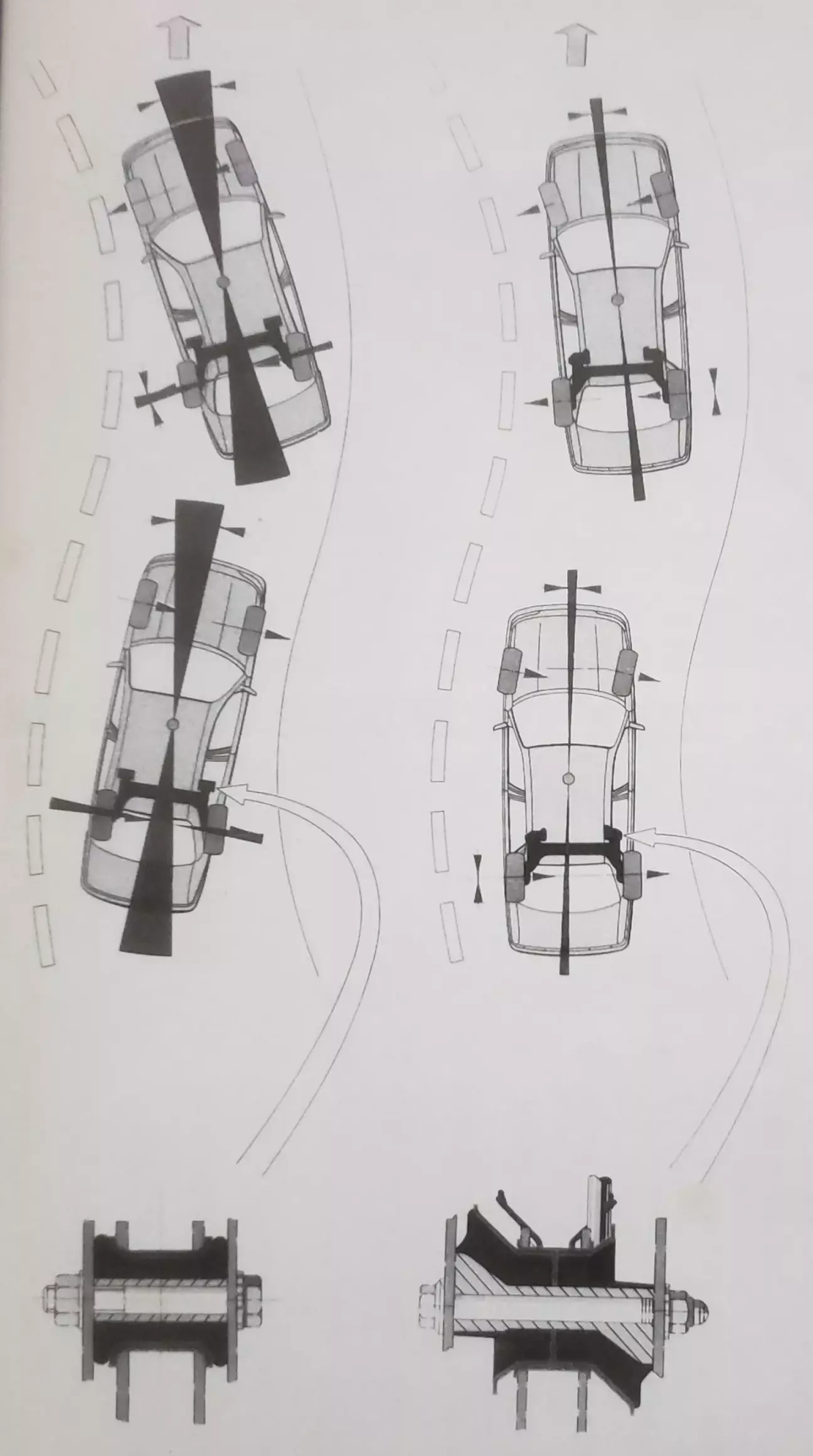 Тем не менее, если не считать рулевого управления с классическим усилителем, лишающим водителя точного чувства дороги, и некоторых проблем с настройкой тросового привода КПП на нашем тестовом экземпляре, новый Passat за эти несколько километров по-настоящему нас покорил. Его сильные стороны — это, безусловно, комфорт и ходовые качества. Передняя подвеска впечатлила своей эффективностью: очень цепкая, она позволяет проходить повороты действительно быстро и легко, при этом типичная для переднего привода склонность к недостаточной поворачиваемости очень хорошо ограничена. Стоит сказать, что кинематика подвески рассчитывалась с помощью высокопроизводительной компьютерной программы ISSAK, разработанной VW. Это позволило установить между треугольными рычагами стоек McPherson (схожих с Golf/Jetta) и подрамником специальные резиновые демпферы, изолирующие кузов от дорожных шумов без ущерба для точности управления. Также это позволило разработать для сайлентблоков задних рычагов подвески особую форму. Под воздействием боковых сил в повороте они не дают балке перекашиваться и заставляют ее при сильных нагрузках доворачиваться в сторону виража, имитируя систему со всеми управляемыми колесами. Задние колеса, работая «в фазе» с передними, пресекают любые вольности кормы: нет ни малейшего намека на занос, даже если совершить ошибку — например, резко сбросить газ на дуге. Огромный прогресс в области активной безопасности. Уверенно стоя на 14-дюймовых дисках с шинами 65-й серии (для версий 90 и 112 л.с.), обладая широкой колеей и внушительной базой, будучи поджатым мощными стабилизаторами спереди и сзади, Passat поворачивает и тормозит безупречно. «Чудо-шасси» этого Passat реализует один из лучших на сегодня компромиссов между плавностью хода и контролем перемещений кузова, между эффективностью управления и пассивной безопасностью. Для семейного автомобиля это, несомненно, весомый аргумент.