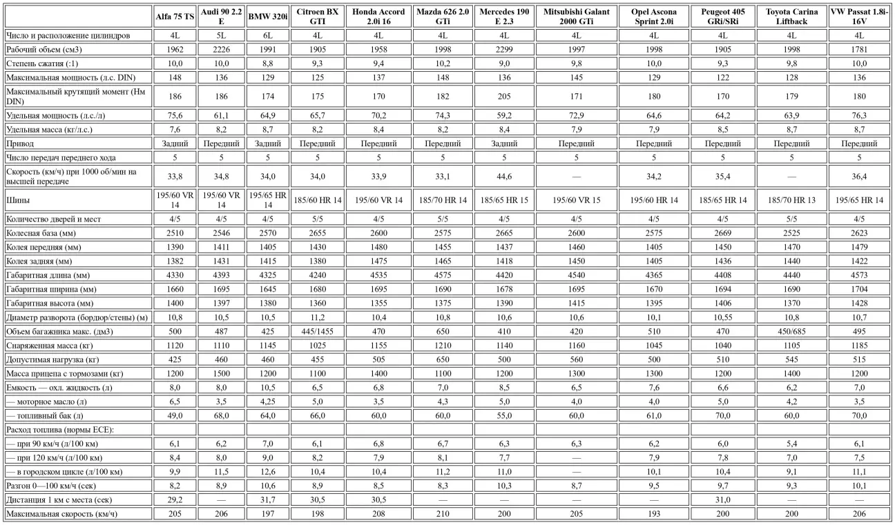 ТЕХНИЧЕСКИЕ И ДИНАМИЧЕСКИЕ ХАРАКТЕРИСТИКИ VW PASSAT 1.8 16V В СРАВНЕНИИ С КОНКУРЕНТАМИ