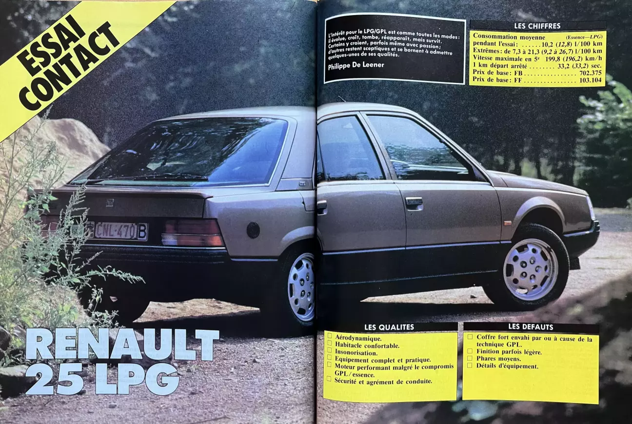 Перевод теста Renault 25 GTX LPG с заводским газовым оборудованием от бельгийского автомобильного журнального издания Le Moniteur de l’Automobile, № 883, Октябрь, 1987.