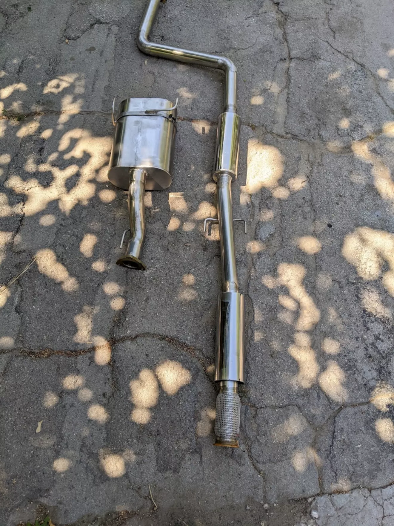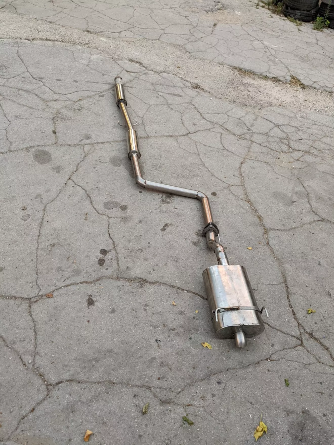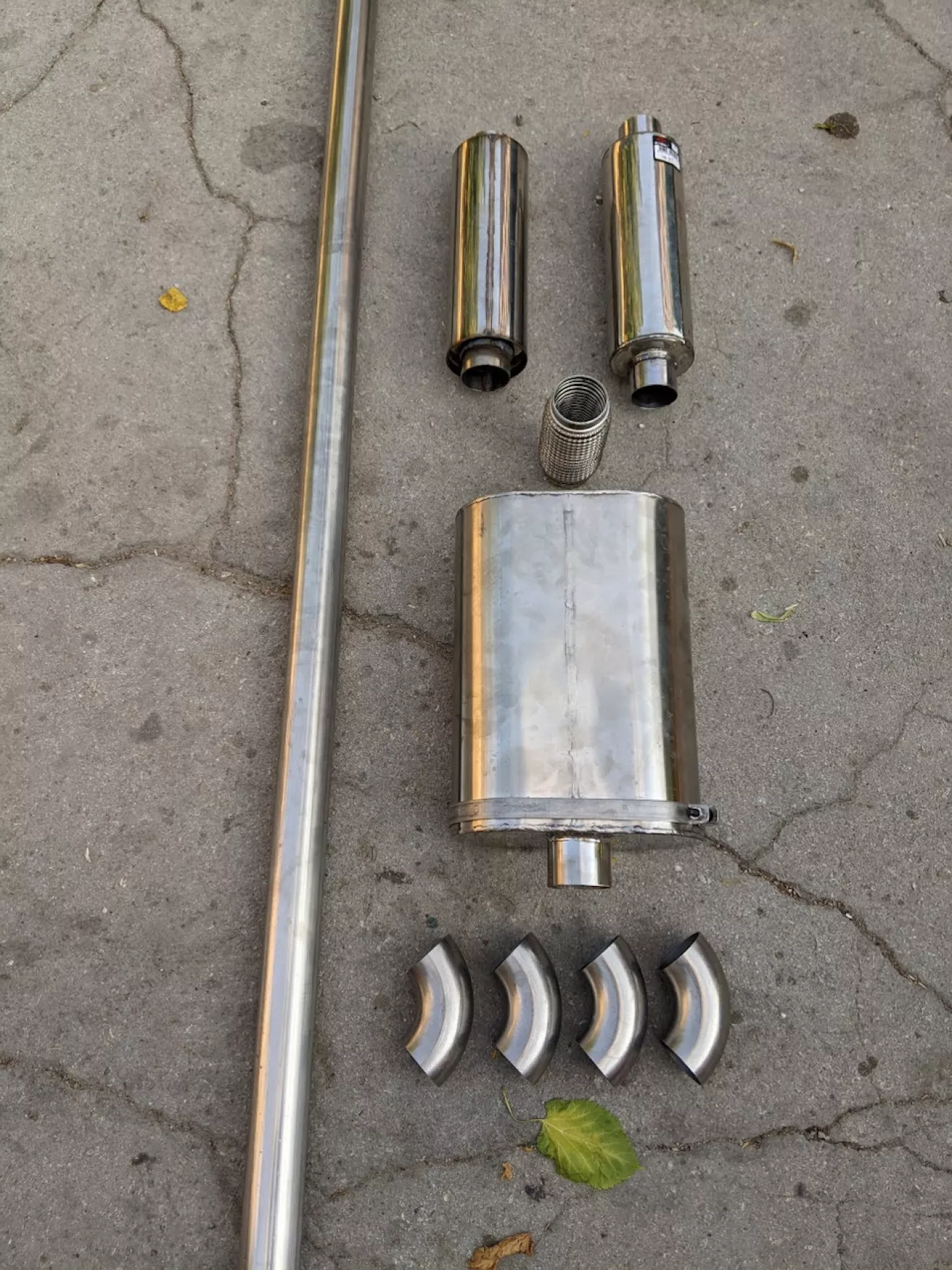 Нашли банку, резонатор и пламегаситель — нержайвека. Прикупился трубой и поворотами и начал мудрить.