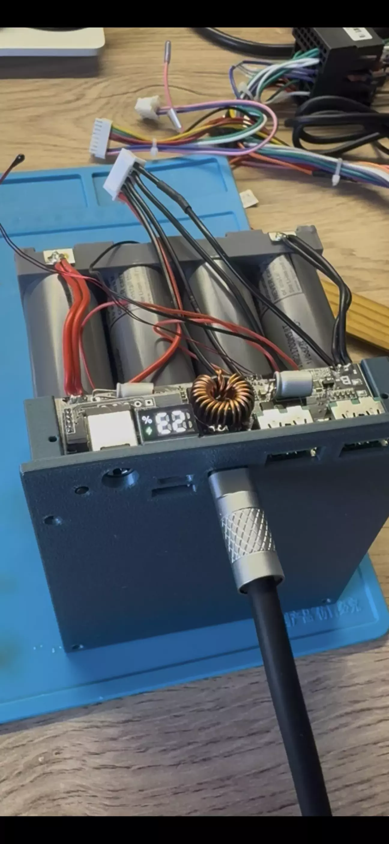 Ось така рукоділка. Для себе (і для колеги) однозначно має сенс, ємність чиста висока, якщо взяти за вектор ефективність контролера в 90% то фактично батарейки видають ще більше. На виході QuickCharge 2 3 4 i PowerDelivery 3.0. 100W видає аж бігом, зарядка теж до 100W при тому що акумулятор в перерахунку на одну банку заряджається в максимумі ну дуже смішним струмом: 1.4А при допустимому в 2.7А.