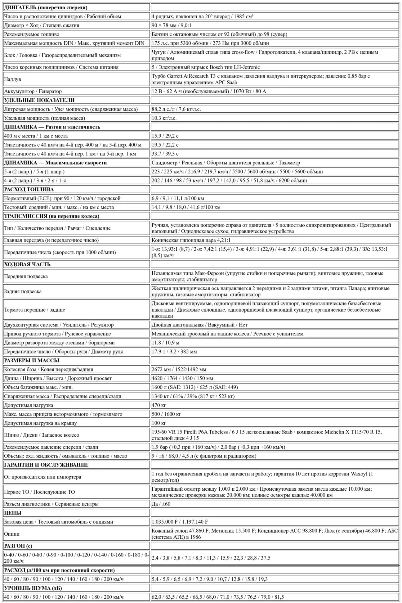 Перевод подробного теста Saab 9000 Turbo 16 от бельгийского автомобильного журнального издания Le Moniteur de l’Automobile, № 822, Май, 1985.