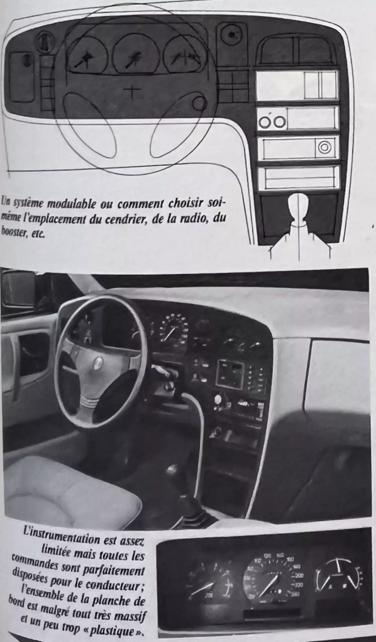 Saab также строит самолеты, и это сразу заметно по рабочему месту водителя. Расположение органов управления абсолютно замечательно, все приборы находятся непосредственно в поле зрения. Предусмотрена даже модульная система, позволяющая водителю самому выбирать место для пепельницы, магнитолы, усилителя и т. д. в зависимости от своих приоритетов. Однако количество приборов и контрольных ламп довольно ограничено, и ощущается нехватка, например, указателя температуры или давления масла. В целом передняя панель выглядит очень массивной и не слишком эстетичной, материалы выбраны не самые роскошные, а в отделке, хоть и очень аккуратной, слишком много пластика и его производных. Даже если некоторые детали заслуживают совершенствования (например, блокировка дверей), серийное оснащение исключительно полное, что исключает риск любых сюрпризов при оплате итогового счета...