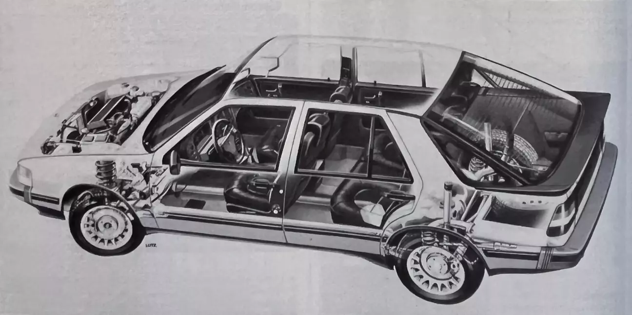 Результат того же базового проекта, что и Lancia Thema, а также будущие Fiat Tipo 4 и Alfa 164 (хотя общие детали между ними, как ни странно, довольно редки), Saab 9000 наконец-то выходит на рынок спустя почти год после своей первой — и, возможно, несколько преждевременной — официальной презентации. С формой задней части, напоминающей Renault 25, и менее резкими общими очертаниями, новый Saab выглядит не столь оригинально, как предыдущие модели, но при этом сохраняет выраженную индивидуальность. Он также демонстрирует твердый характер благодаря высоким динамическим показателям и четко заявленным претензиям в области управляемости и комфорта.