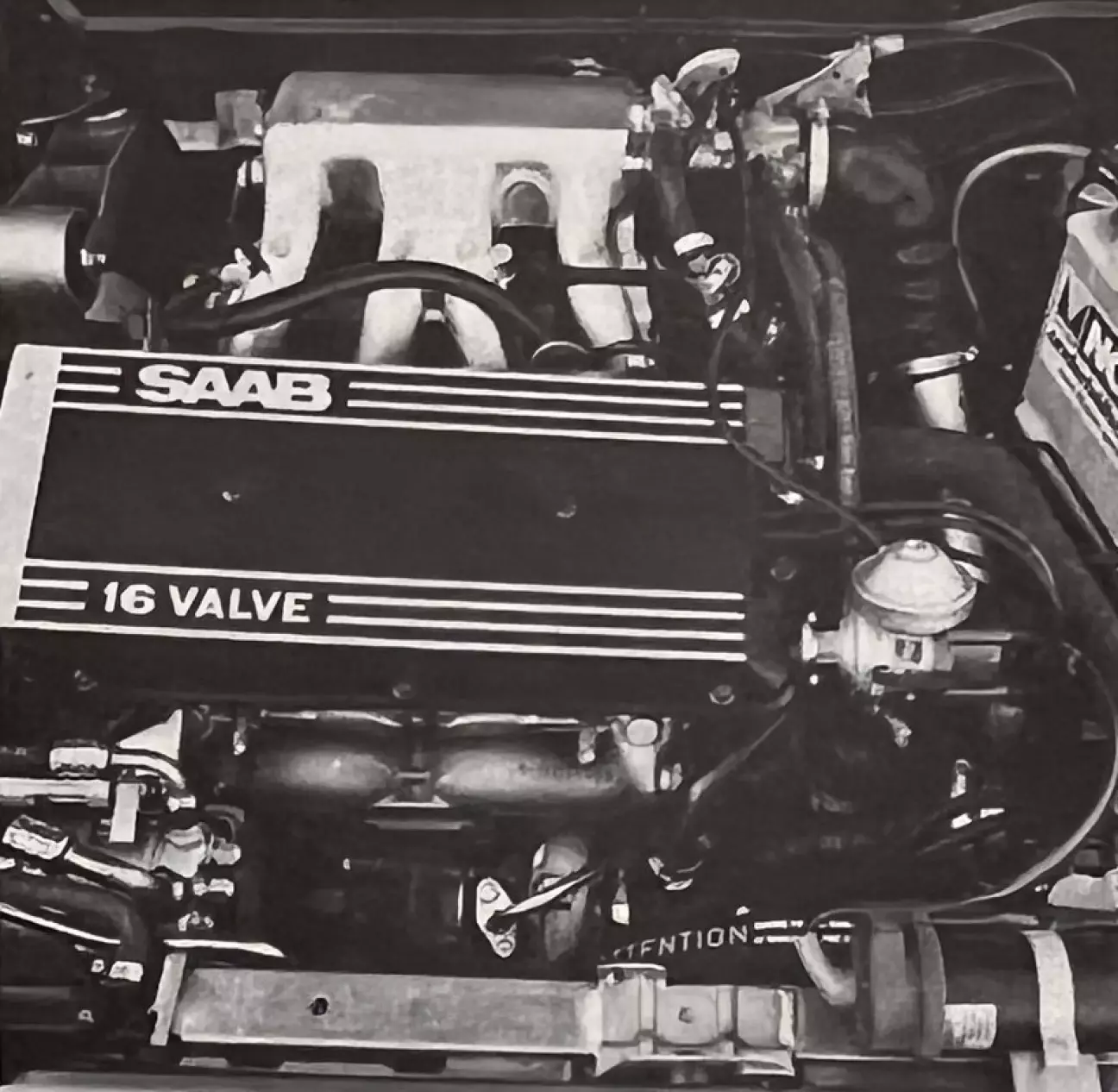 16-клапанный мотор оснащен турбокомпрессором Garrett AiResearch T3 со встроенным перепускным клапаном (wastegate). Система питания — электронный впрыск бензина Bosch LH-Jetronic, который, в частности, автоматически компенсирует изменения высоты над уровнем моря и климата, поскольку измеряет плотность воздуха, а не его объем. Система охлаждения 9000 включает в себя четыре различных контура: масляный радиатор, отделенный от системы смазки двигателя и регулируемый термостатом; конденсатор кондиционера; охладитель наддувочного воздуха и обычный радиатор системы охлаждения двигателя. Три последних расположены друг за другом (два последних выполнены из алюминия, что позволило сделать их очень большими, легкими и тонкими). Спереди установлен небольшой вентилятор, обслуживающий только систему кондиционирования, в то время как сзади находится основной классический электроветилятор с термостатом. Последняя техническая деталь: этот двигатель уже изначально рассчитан на работу на неэтилированном бензине.
