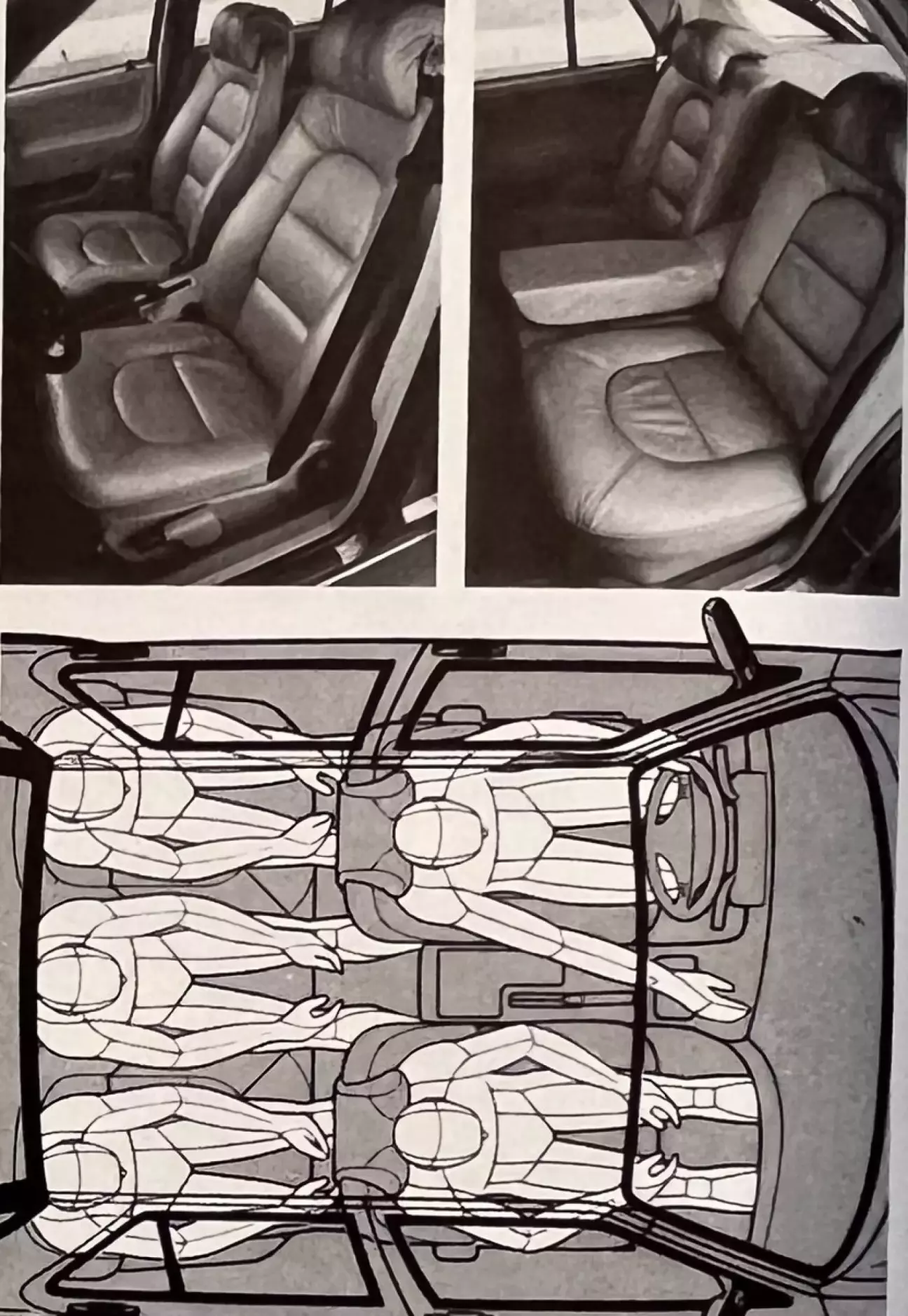Полностью обтянутые очень красивой кожей сиденья гостеприимны и предлагают очень высокий уровень комфорта, особенно водительское, имеющее множество механических регулировок. Передние кресла, разумеется, оснащены подогревом подушки и спинки, а также — как и сзади — подголовниками, регулируемыми только по высоте. Однако кожа — материал довольно скользкий, и Saab следовало бы усилить боковые валики сидений для лучшей поддержки спины и бедер; в крутых виражах именно ремни безопасности удерживают тело более-менее в исходном положении — это мешает как водителю, так и пассажирам. Зато и те, и другие будут довольны предоставленным им пространством. Saab 9000 — это действительно очень большая внутри машина, предлагающая уровень простора, более чем достаточный для пяти взрослых высокого роста, причем как по длине, так и по ширине и высоте.