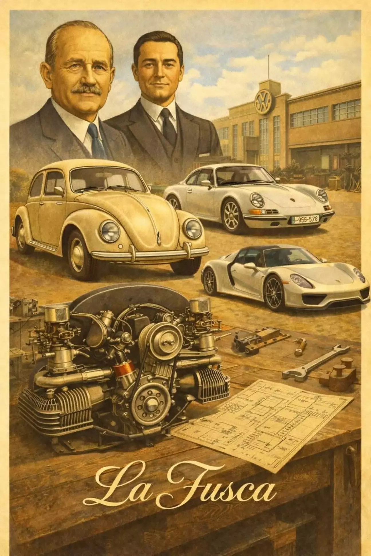 У 1931 році Dr. Ing. h.c. F. Porsche GmbH займалася розробками для сторонніх замовників. Ключовий проєкт — Volkswagen Type 1. Саме тут сформувався опозитний двигун із повітряним охолодженням: простий, живучий, ремонтопридатний.
