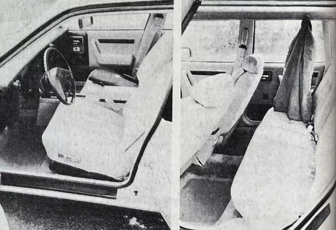 Вернемся к осмотру. Перчаточный ящик, оснащенный подсветкой в базе, крошечный и скрыт за очень большой крышкой, запирающейся на ключ. К счастью, в центральном подлокотнике есть вместительный и практичный бокс, а в торце той же консоли, устанавливаемой штатно для экспорта, имеется глубокая ниша, приспособленная для хранения кассет или любых других вещей. Карманы для карт в дверях, напротив, отсутствуют. В автомобиле имелся реостат интенсивности подсветки приборов (судя по всему, стандартный, так как он не упоминается в списке опций), чисто символическая лампа для чтения карт, цифровые кварцевые часы (с белыми цифрами, нанесенными на ролики, как в одометре). Пепельница с прикуривателем удобно расположена под органами управления отопителем, под рукой как у водителя, так и у пассажира. На рулевой колонке всего два рычага с левой стороны: тот, что управляет фиксатором наклона, и крупный подрулевой переключатель сложной формы. Последний управляет одновременно указателями поворота, переключением ближнего и дальнего света, омывателем, стеклоочистителем с регулируемым прерывистым режимом (не слишком точным в настройке) и круиз-контролем.