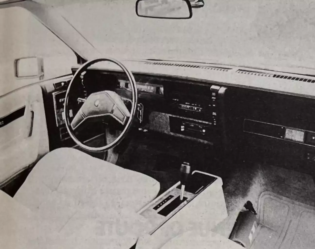 Сама приборная панель очень лаконична: указатель уровня топлива (без лампы резерва), индикатор положений селектора передач, спидометр и одометр, но без счетчика суточного пробега. Впрочем, в шоуруме фирмы Mabille я видел Oldsmobile Cutlass Ciera Brougham — почти близнеца Buick в серии A-body — у которого была великолепная приборная панель европейского типа с многочисленными красивыми круглыми шкалами, тахометром, вольтметром, указателем давления масла и т.д.