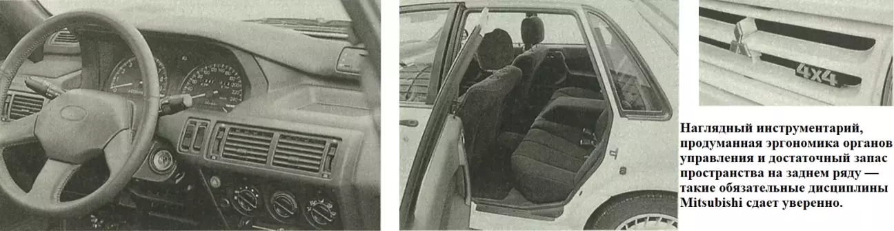 Внутри — типичное для состоятельного «японца» изобилие: помимо многочисленных электрических помощников для управления стеклами, зеркалами и центральным замком, Mitsubishi предлагает и такие тактильные любезности, как руль и рычаг переключения передач, обтянутые кожей. Плюс два счетчика суточного пробега, один из которых рассчитан на дистанцию до 9999 км. Багажное отделение несколько потеряло в объеме из-за пространства, необходимого для размещения сложной ведущей задней оси: 328 литров — показатель ниже среднего по классу. В случае прокола утешением послужит лишь докатка. Мест для хранения в салоне много, но они также не отличаются вместительностью. Отдельной похвалы заслуживает держатель для напитков в центральной консоли, надежно фиксирующий банки при воздействии боковых сил. Система отопления и вентиляции (по желанию — с кондиционером) работает безупречно: судя по всему, она прошла суровую школу испытаний в диапазоне от знойного юга Японии до ледяных просторов Хоккайдо.