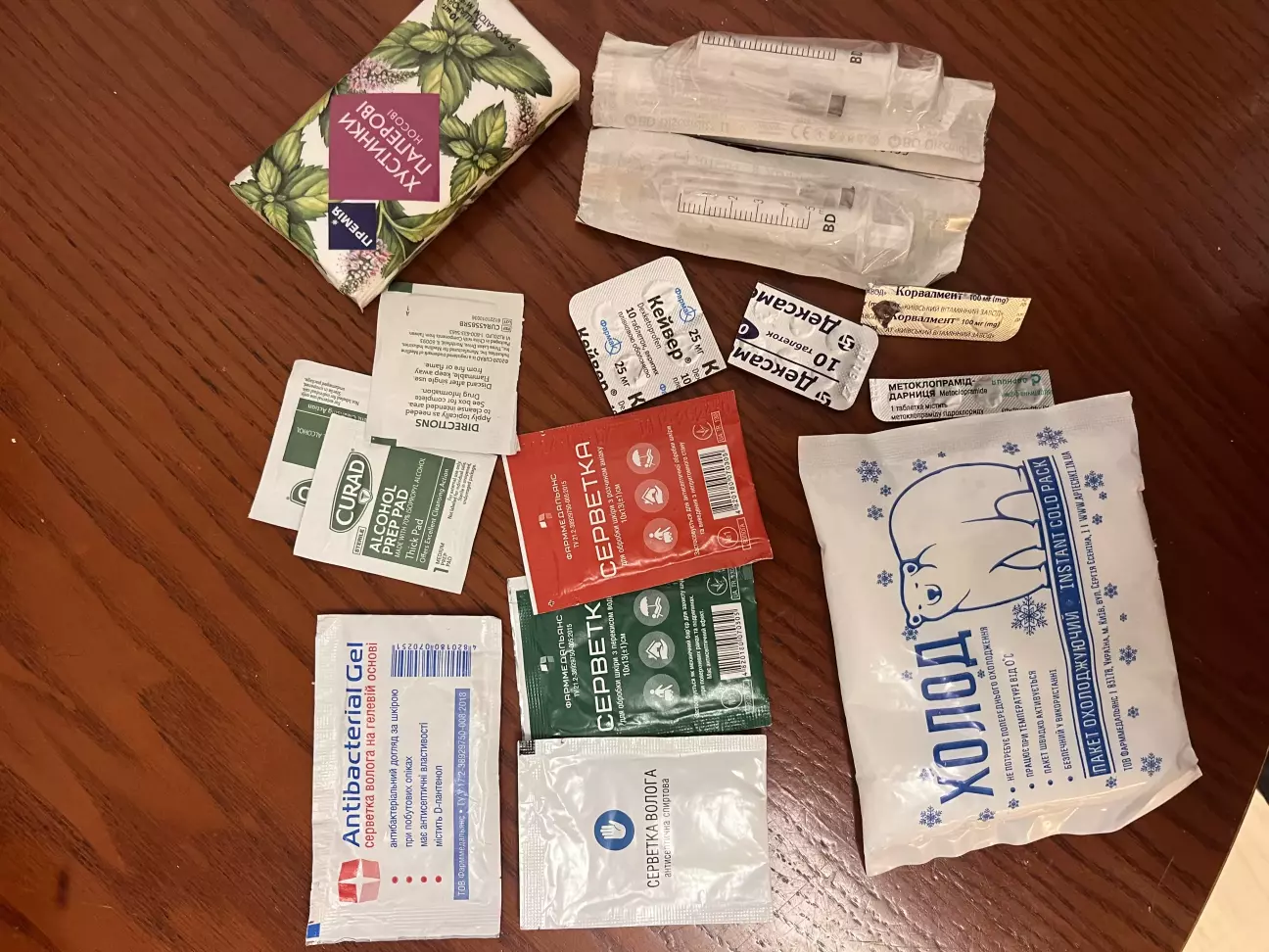 Трошки подивився в інтернеті, трошки сам знав і зібрав набір який на мою думку мені вистачить. Почав із того чим обробити рани, та і якісь пігулочки від алергії, та від болю.