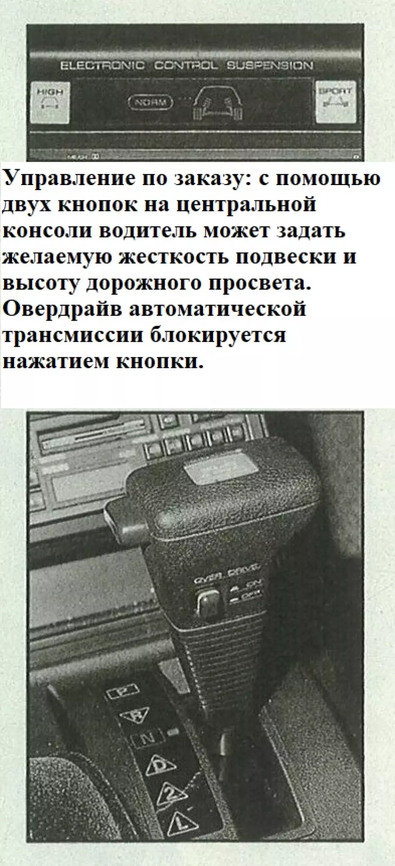Электроника подчиняется как водителю, который может запрограммировать свои пожелания относительно дорожного просвета и жесткости подвески с помощью двух кнопок на центральной консоли, так и пяти датчикам, постоянно снабжающим умный центральный процессор информацией о положении кузова, положении дроссельной заслонки, скорости и угле поворота руля. Чтобы менее сообразительный водитель не наделал глупостей, компьютер корректирует ручные настройки всякий раз, когда сочтет это нужным. Если, к примеру, водитель выбирает комфортный режим, а затем внезапно тормозит или поворачивает руль, процессор за миллисекунды отдает команду воздушному компрессору нагнести воздух в камеры стоек. Благодаря этому жесткость пружин возрастает на 50 процентов относительно нормального положения, а амортизаторы становятся жестче на целых 150 процентов. Как только датчики снова рапортуют о нормальных условиях движения, компьютер автоматически переключается со спортивного режима в комфортный.