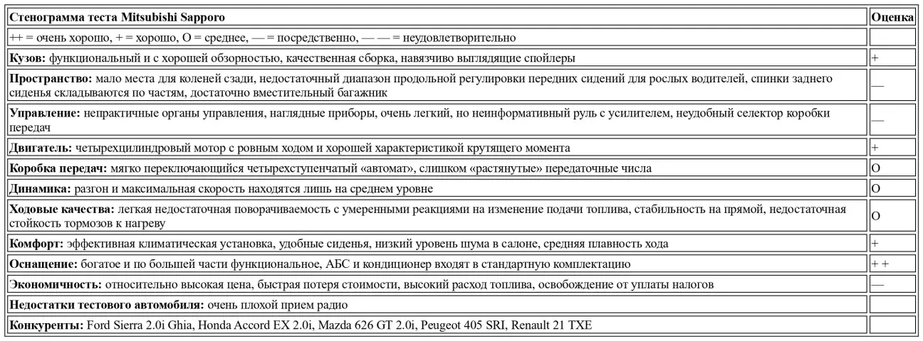 Перевод теста Mitsubishi Sapporo от немецкого автомобильного журнального издания Auto Motor und Sport, № 01, 1988.