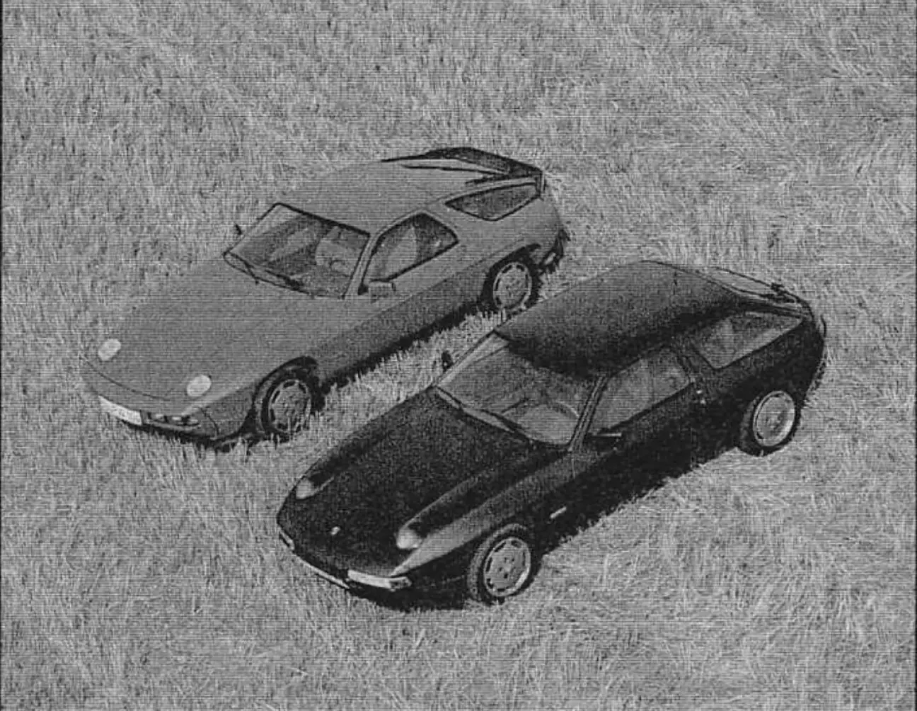 На внешних панелях 928 были реализованы и другие фирменные особенности: передние крылья получили четко очерченную грань, видимую с места водителя — подспорье при маневрировании, которое Ферри Порше хотел бы видеть еще на серийном 928. С учетом этого стилистического изменения подъемные фары 928 больше не вписывались в облик; их заменили новыми проекционными фарами Hella, которые при экстремально малой площади светового отверстия гарантируют освещенность дороги не хуже традиционных прожекторов. Для проработки дизайна новых передних крыльев сначала построили деревянные макеты. В студии стиля старое крыло 928 получило ту самую контрольную грань, а две объемные колесные арки затем изготавливались вручную в ходе длительной работы специалистов, что придало передней части 928 совершенно иной вид.