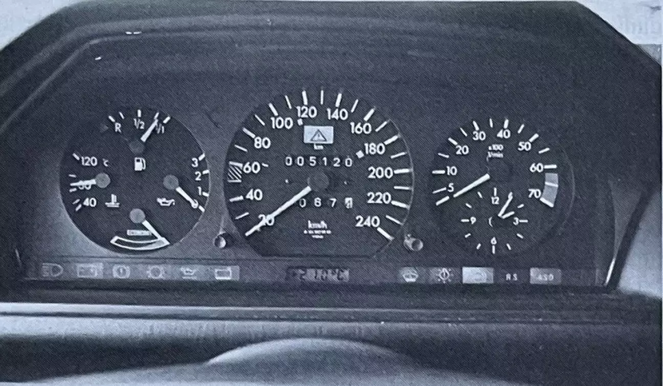 Зато 300 CE в стандарте, как и его собратья серии SEC, оснащен автоматическими подавателями ремней безопасности. Отсутствие средней стойки заставило отнести точку крепления далеко назад. Когда садишься в передние кресла, специальный рычаг подносит ремень прямо под руку, как только включается зажигание. Инерционные катушки, кроме того, снабжены преднатяжителями с электронным управлением, срабатывающими при ударе, что особенно полезно, говорят, при столкновении под углом. Водитель Renault 11, искавший окурок под сиденьем, вполне мог дать нам повод проверить систему и подушку безопасности, но мы предпочли использовать дорожные качества 300 CE, чтобы объехать это «препятствие». Продолжая тему безопасности: спинки передних сидений свободно откидываются при стоянке, что облегчает доступ назад, и блокируются вакуумным приводом при работающем двигателе. Чтобы иметь возможность войти или выйти при заведенном моторе, разумеется, предусмотрена кнопка разблокировки. Лампы для чтения спереди и сзади, достаточное количество мест для хранения, электростеклоподъемники всех окон — нет нужды пускаться в нудное описание: салон 300 CE функционален и уютен, в нем чувствуешь себя готовым с комфортом провести самые долгие путешествия.