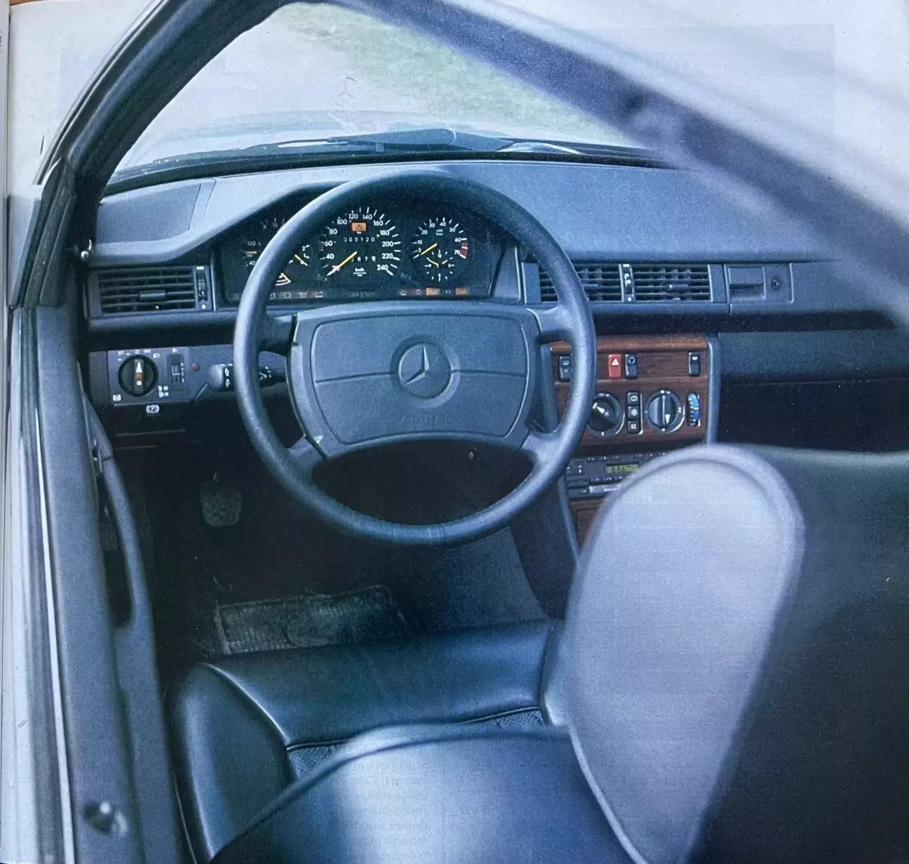 Событие датируется апрелем... Диаметр рулей 124-й серии был уменьшен! На седане он сократился с — вдумайтесь — 410 до 400 мм! Этот новый размер, разумеется, касается и купе, и по сравнению с предшественником 123-й серии это дает выигрыш в 2 см. Автомобильная пресса явно недостаточно уделяет внимания чувству юмора штутгартцев. В вопросе рулевых колес они способны развлечь собрание журналистов. Лучшее — это, несомненно, их рассуждения о средней комплекции владельца Mercedes. Тому, дескать, удобнее с большим диаметром, так как это облегчает дыхание. С невозмутимым видом они доходят до того, что упоминают отказ гидроусилителя для оправдания размеров «баранки». Это заставляет нас стать серьезнее и отметить: хотя усилитель не имеет зависимости от скорости, он оказывается ценным союзником при маневрировании, не ухудшая курсовую устойчивость на высокой скорости. Также примечателен на удивление малый диаметр разворота для машины таких габаритов. Благодаря строго спроектированной и очень цепкой передней подвеске 300 CE также очень четко держит траекторию. Возвращаясь к рулю: стоит знать, что Mercedes предлагает в своем объемном каталоге опций электрическую регулировку вылета.